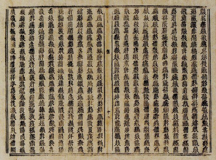 Keywords: Folio from the Auspicious Tantra of All-Reaching Union.jpg en Auspicious Tantra of All-Reaching Union Supplementary Explanations volume 3 folio 12 Folio of a 12th century Tangut translation of a Tantra printed using wooden movable type from the Baisigou Square Pagoda in Ningxia China 2011-09-26 Ningxia Institute of Cultural Relics and Archaeology Bàisìgōu Xīxià Fāngtǎ 寺沟西夏方塔 The Western Xia Square Pagoda at Baisigou Beijing Wenwu Chubanshe 2005 Colur Plate XI no 2 Folio of a wooden typeset book in Tangut printed during the second half of the 12th century PD-old-100 Uploaded with UploadWizard Tangut printed texts