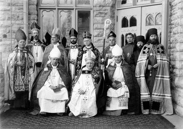 Keywords: Fond-du-lac-circus.preview.jpg Reginald Heber Weller as an Anglican bishop at the Cathedral of St Paul the Apostle in the Protestant Episcopal Diocese of Fond du Lac <br><br> Seated left to right The Rt Rev Isaac Lea Nicholson Episcopal Bishop of Milwaukee; the Rt Rev Charles Chapman Grafton Episcopal Bishop of Fond du Lac; and the Rt Rev Charles P Anderson Episcopal Bishop Coadjutor of Chicago <br> Standing left to right are the Rt Rev Anthony Kozłowski of the Polish National Catholic Church; the Rt Rev G M Williams Episcopal Bishop of Marquette; the Rt Rev Reginald Weller the Rt Rev Joseph M Francis Episcopal Bishop of Indianapolis the Rt Rev William E McLaren Episcopal Bishop of Chicago; the Rt Rev Arthur L Williams Episcopal Bishop Coadjutor of Nebraska; St John Kochurov Russian Orthodox protomartyr of the Bolshevik Revolution Fr Sebastian Dabovich both chaplains to Bishop Tikhon Bellavin of Alaska and the Aleutian Islands 1900-11-08 http //www episcopalfonddulac org/grafton/ The Protestant Episcopal Diocese of Fond du Lac other versions 120px Custom license marker 2016 02 22 PD-old Tikhon of Moscow Sebastian Dabovich Charles Chapman Grafton John Kochurov Reginald Heber Weller Arthur Llewllyn Williams Isaac Lea Nicholson ImageNote 1 1268 264 222 672 1600 1128 2 Tikhon Bellavin ImageNoteEnd 1 ImageNote 2 1166 304 128 194 1600 1128 2 Sebastian Dabovich ImageNoteEnd 2 ImageNote 3 1072 264 112 292 1600 1128 2 John Kochurov ImageNoteEnd 3 ImageNote 4 60 152 224 784 1600 1128 2 Anthony Kozlowski ImageNoteEnd 4 ImageNote 5 232 134 158 530 1600 1128 2 G M Williams ImageNoteEnd 5 ImageNote 6 406 180 172 236 1600 1128 2 Reginald Weller ImageNoteEnd 6 ImageNote 7 602 204 112 320 1600 1128 2 Joseph M Francis ImageNoteEnd 7 ImageNote 8 708 238 156 244 1600 1128 2 William Edward McLaren ImageNoteEnd 8 ImageNote 9 864 238 220 172 1600 1128 2 Arthur L Williams ImageNoteEnd 9 ImageNote 10 416 450 156 510 1600 1128 2 Isaac Lea Nicholson ImageNoteEnd 10 ImageNote 11 674 438 238 492 1600 1128 2 Charles Chapman Grafton ImageNoteEnd 11 ImageNote 12 926 384 222 392 1600 1128 2 Charles P Anderson ImageNoteEnd 12 |