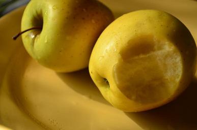 Keywords: food fruit apple plate dessert delicious summer juicy krupnyj plan yellow