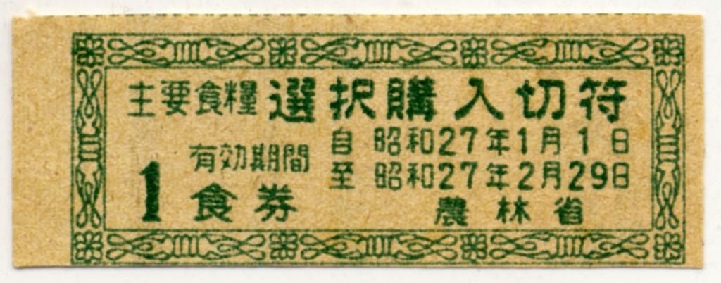 Keywords: Foodstamp.jpg en Japanese food stamp after WWII ja 太平洋戦争終戦後に使われた食糧選択購入切符 称 食券 日 国農林 発給 日 国政 農林 1952-01-01 PD-ineligible PD-Japan-organization Tickets of Japan Ministry of Agriculture Forestry and Fisheries Japan Shōwa era