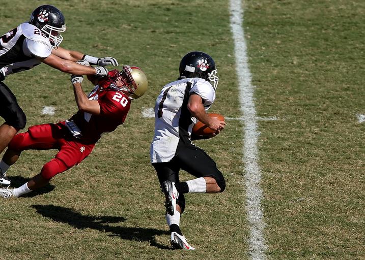| Keywords: football american football teamwork helmet game sport competition team collision compete field player outdoors american football field kick return runner ball carrier running back american football player athletes athletic play running action yard line block blocking hit college college football blocker gridiron texas |