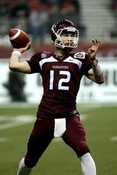 Keywords: football quarterback canadian vanier cup american football player helmet sport ball competition uniform football field strength football helmet game action football team male football american throwing passing pass throw college team sport