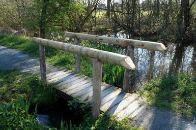 Keywords: footbridge wood pedestrian bridge stream nature walkway walk hiking cycling