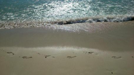 Keywords: footprints sand sun beach sea coast ocean sand beach water summer wave holiday