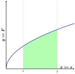 | Keywords: Force-distance-diagram.svg en Force-distance diagramm The marked area is work Force is variable de Kraft-Weg Diagramm bei veränderbarer Kraft Die markierte Fläche ist die verrichtete Arbeit own MartinThoma 2014-08-12 cs 0 0 5 anchor south rotate 90 font \boldmath\Large \addplotdomain 0 4 blue very thick samples 500 name path f sqrt x ; \pathname path axis axis cs 0 0 -- axis cs 10 0 ; \addplotfill green fill opacity 0 3 fill betweenof f and axis soft clip domain 1 3 ; \end axis \end tikzpicture \end document </source> Mechanical work Displacement Images by Martin Thoma/Physics TikZ diagrams Cc-zero force-distance diagrams |