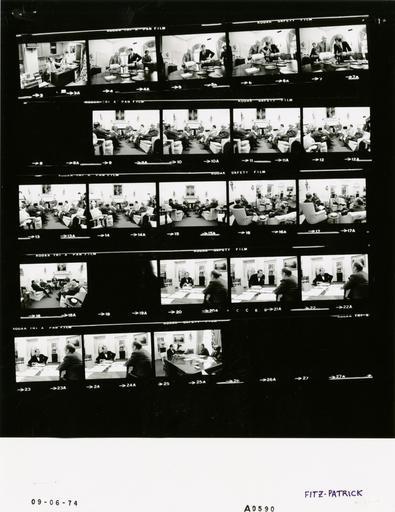 | Keywords: Ford A0590 NLGRF photo contact sheet (1974-09-06)(Gerald Ford Library).jpg White House Photographic Office WHPO is housed at the Gerald R Ford Presidential Library a branch of the National Archives and Records Administration NARA <br/><br/> This file is a 200 dpi photo contact sheet having images from roll of film A0590 of the August 9 1974 - January 20 1977 Gerald R Ford White House Photographic Office Series A0001-A9999 and B0001-B2886 photographs <br/><br/> The date on the photo contact sheet is the date the roll of film was processed not necessarily the date the photographs were taken See table below for additional details 1974-09-06 Gerald R Ford Presidential Library Image http //www fordlibrarymuseum gov/library/whphotos/A0590_NLGRF jpg A0590_NLGRF jpg from http //www fordlibrarymuseum gov/library/whphotos/19740906whpo pdf White House Photographs September 6 1974 of the http //www fordlibrarymuseum gov/Library/whphotos/whpo asp White House Photographic Collection page White House Photographic Office WHPO - Fitz-Patrick PD-USGov Institution Institution Gerald R Ford Presidential Library Table wikitable sortable + Photo contact sheet A0590 U S President Ford Administration Gerald R Ford Library Frame s Tone Subject proper Subject generic Names Geographic Location Photographer Date - 3 BW Personal Photographer to the President sitting behind desk Kennerly White House Photo Office Fitz-Patrick 1974-09-06 - 4-7 BW looking at Apollo-Soyuz model O'Donnell Unidentified Man White House Steward Scheduling and Advance Office Fitz-Patrick 1974-09-06 - 8 BW Fitz-Patrick 1974-09-06 - 9-15 BW National Association of Manufacturers officials seated near fireplace talking GRF Donald A Gaudion E Douglas Kenna Charles H Smith Arch N Booth Baroody Oval Office Fitz-Patrick 1974-09-06 - 16-17 BW National Association of Manufacturers officials seated near fireplace talking GRF Donald A Gaudion E Douglas Kenna Charles H Smith Arch N Booth Oval Office Fitz-Patrick 1974-09-06 - 18 BW National Association of Manufacturers officials seated near fireplace talking GRF Donald A Gaudion E Douglas Kenna Charles H Smith Arch N Booth Baroody Oval Office Fitz-Patrick 1974-09-06 - 19 BW Fitz-Patrick 1974-09-06 - 20-24 BW Chairman Combined Insurance Company of America seated at desk; taken from left of GRF GRF W Clement Stone Oval Office Fitz-Patrick 1974-09-06 - 25 BW Chairman Combined Insurance Company of America seated at desk; taken from right front desk corner GRF W Clement Stone Oval Office Fitz-Patrick 1974-09-06 Gerald R Ford Presidential Library and Museum-cooperation PD-USGov Contact sheets by the Ford White House September 1974 |