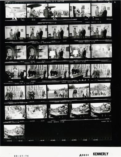 Keywords: Ford A0604 NLGRF photo contact sheet (1974-09-06)(Gerald Ford Library).jpg White House Photographic Office WHPO is housed at the Gerald R Ford Presidential Library a branch of the National Archives and Records Administration NARA <br/><br/> This file is a 200 dpi photo contact sheet having images from roll of film A0604 of the August 9 1974 - January 20 1977 Gerald R Ford White House Photographic Office Series A0001-A9999 and B0001-B2886 photographs <br/><br/> The date on the photo contact sheet is the date the roll of film was processed not necessarily the date the photographs were taken See table below for additional details 1974-09-06 Gerald R Ford Presidential Library Image http //www fordlibrarymuseum gov/library/whphotos/A0604_NLGRF jpg A0604_NLGRF jpg from http //www fordlibrarymuseum gov/library/whphotos/19740906whpo pdf White House Photographs September 6 1974 of the http //www fordlibrarymuseum gov/Library/whphotos/whpo asp White House Photographic Collection page White House Photographic Office WHPO <br/> Creator David Hume Kennerly PD-USGov Institution Institution Gerald R Ford Presidential Library Table wikitable sortable + Photo contact sheet A0604 U S President Ford Administration Gerald R Ford Library Frame s Tone Subject proper Subject generic Names Geographic Location Photographer Date - 3 BW walking under umbrella to limousine GRF Barrett Secret Service Walkway between Oval Office and Driveway Kennerly 1974-09-06 - 4-5 BW Funeral for General Creighton Abrams - Fort Myer Virginia standing under umbrellas GRF Betty Ford Secret Service Fort Myer VA Outside Fort Myer Memorial Chapel Kennerly 1974-09-06 - 6-16 BW President Economic Club of Detroit standing greeting handshaking talking GRF Mr Mrs Russell A Swaney Oval Office Kennerly 1974-09-07 - 17 BW backs to camera facing media GRF crews of Apollo-Soyuz mission Media Cabinet Room Kennerly 1974-09-07 - 18 BW Crew of Joint Apollo-Soyuz Space Mission standing behind model of Apollo-Soyuz spacecraft GRF Anatoly Dobrynin Aleksey Leonov Valery Kubasov Vladamir Shatalov Thomas Stafford Donald Slayton Vance Brand George Low Anatole Forostenko Scowcroft Media Cabinet Room Kennerly 1974-09-07 - 19-21 BW Crew of Joint Apollo-Soyuz Space Mission standing behind desk - head on shot GRF Aleksey Leonov Valery Kubasov Vladamir Shatalov Thomas Stafford Donald Slayton Vance Brand Oval Office Kennerly 1974-09-07 - 22-24 BW Crew of Joint Apollo-Soyuz Space Mission standing behind desk - shot from right of group GRF Aleksey Leonov Valery Kubasov Vladamir Shatalov Thomas Stafford Donald Slayton Vance Brand Oval Office Kennerly 1974-09-07 - 25-26 BW Alexandria VA Police Association Crab Pick Picnic - Fairfax Virginia walking - Army One helicopter in background GRF Aleksey Leonov Valery Kubasov Vladamir Shatalov Thomas Stafford Donald Slayton Vance Brand Walter Calhoun John V Streeter Fairfax VA North Virginia Police Academy Kennerly 1974-09-07 - 27 BW Alexandria VA Police Association Crab Pick Picnic - Fairfax Virginia speaking into microphone GRF Crowd Fairfax VA North Virginia Police Academy Kennerly 1974-09-07 - 28-29 BW Alexandria VA Police Association Crab Pick Picnic - Fairfax Virginia sitting eating; GRF signing autograph GRF Aleksey Leonov Valery Kubasov Vladamir Shatalov Thomas Stafford Donald Slayton Vance Brand Crowd Fairfax VA North Virginia Police Academy Kennerly 1974-09-07 - 30-33 BW Alexandria VA Police Association Crab Pick Picnic - Fairfax Virginia sitting eating talking - not in order GRF Aleksey Leonov Valery Kubasov Vladamir Shatalov Thomas Stafford Donald Slayton Vance Brand Anatoly Dobrynin Crowd Fairfax VA North Virginia Police Academy Kennerly 1974-09-07 Gerald R Ford Presidential Library and Museum-cooperation PD-USGov Contact sheets by the Ford White House September 1974 Photographs by David Hume Kennerly from 1974 |