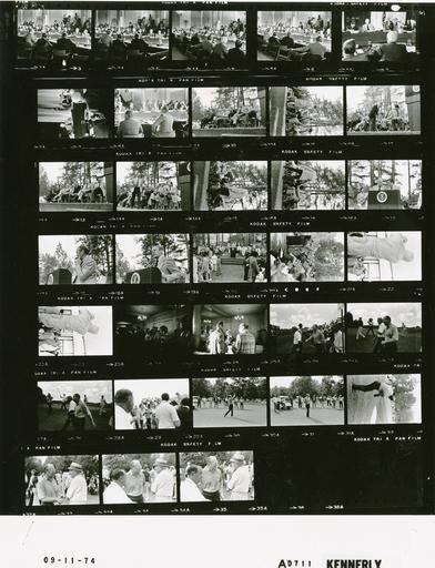 Keywords: Ford A0711 NLGRF photo contact sheet (1974-09-11)(Gerald Ford Library).jpg White House Photographic Office WHPO is housed at the Gerald R Ford Presidential Library a branch of the National Archives and Records Administration NARA <br/><br/> This file is a 200 dpi photo contact sheet having images from roll of film A0711 of the August 9 1974 - January 20 1977 Gerald R Ford White House Photographic Office Series A0001-A9999 and B0001-B2886 photographs <br/><br/> The date on the photo contact sheet is the date the roll of film was processed not necessarily the date the photographs were taken See table below for additional details 1974-09-11 Gerald R Ford Presidential Library Image http //www fordlibrarymuseum gov/library/whphotos/A0711_NLGRF jpg A0711_NLGRF jpg from http //www fordlibrarymuseum gov/library/whphotos/19740911whpo pdf White House Photographs September 11 1974 of the http //www fordlibrarymuseum gov/Library/whphotos/whpo asp White House Photographic Collection page White House Photographic Office WHPO <br/> Creator David Hume Kennerly PD-USGov Institution Institution Gerald R Ford Presidential Library Table wikitable sortable + Photo contact sheet A0711 U S President Ford Administration Gerald R Ford Library Frame s Tone Subject proper Subject generic Names Geographic Location Photographer Date - 3-6 BW Labor Conference on Inflation seated around table; from right and back of GRF GRF Panelists East Room Kennerly 1974-09-11 - 7-8 BW Labor Conference on Inflation seated; taken towards GRF from behind Meany GRF Sen Tower Rep McFall George Meant Panelists East Room Kennerly 1974-09-11 - 9 BW Labor Conference on Inflation seated; taken from behind GRF toward Woodcock and Meany GRF Rep Rhodes Leonard Woodcock George Meany Labor Leaders East Room Kennerly 1974-09-11 - 10 BW Trip to North Carolina; World Golf Hall of Fame Induction Ceremony -Pinehurst North Carolina seated applauding Sen Helms Byron Nelson Sam Snead Ben Hogan GRF Deane Beman Pinehurst NC Pinehurst Country Club Kennerly 1974-09-11 - 11 BW Trip to North Carolina; World Golf Hall of Fame Induction Ceremony -Pinehurst North Carolina handshaking GRF Patty Berg Pinehurst NC Pinehurst Country Club Kennerly 1974-09-11 - 12 BW Trip to North Carolina; World Golf Hall of Fame Induction Ceremony -Pinehurst North Carolina Hogan standing Sen Helms Patty Berg Byron Nelson Sam Snead Ben Hogan GRF Deane Beman Pinehurst NC Pinehurst Country Club Kennerly 1974-09-11 - 13 BW Trip to North Carolina; World Golf Hall of Fame Induction Ceremony -Pinehurst North Carolina listening to speaker Sen Helms Patty Berg Byron Nelson Sam Snead Ben Hogan GRF Deane Beman Pinehurst NC Pinehurst Country Club Kennerly 1974-09-11 - 14 BW Trip to North Carolina; World Golf Hall of Fame Induction Ceremony -Pinehurst North Carolina Snead walking to podium; others seated applauding Sen Helms Patty Berg Byron Nelson Sam Snead Ben Hogan GRF Deane Beman Pinehurst NC Pinehurst Country Club Kennerly 1974-09-11 - 15-16 BW Trip to North Carolina; World Golf Hall of Fame Induction Ceremony -Pinehurst North Carolina Snead walking to seat shaking hands; back to camera obscuring others Sen Helms Patty Berg Byron Nelson Sam Snead Ben Hogan GRF Deane Beman Pinehurst NC Pinehurst Country Club Kennerly 1974-09-11 - 17-19 BW Trip to North Carolina; World Golf Hall of Fame Induction Ceremony -Pinehurst North Carolina standing at podium GRF Deane Beman Pinehurst NC Pinehurst Country Club Kennerly 1974-09-11 - 20 BW Trip to North Carolina; World Golf Hall of Fame Induction Ceremony -Pinehurst North Carolina GRF at podium - long shot Sen Helms Patty Berg Byron Nelson Sam Snead Ben Hogan GRF Deane Beman Donald Collett Arnold Palmer Jack Nicklaus Gary Player Gene Sarazen Platform Guests Crowd Pinehurst NC Pinehurst Country Club Kennerly 1974-09-11 - 21 BW Trip to North Carolina; World Golf Hall of Fame Induction Ceremony -Pinehurst North Carolina GRF at podium others applauding-left side shot GRF Donald Collett Arnold Palmer Jack Nicklaus Gary Player Gene Sarazen Pinehurst NC Pinehurst Country Club Kennerly 1974-09-11 - 22-23 BW World Golf Hall of Fame - Pinehurst North Carolina looking at statue of golfer Bobby Jones Jr GRF Others Pinehurst NC World Golf Hall of Fame Building Kennerly 1974-09-11 - 24-25 BW World Golf Hall of Fame - Pinehurst North Carolina standing talking GRF Others Pinehurst NC World Golf Hall of Fame Building Kennerly 1974-09-11 - 26-28 BW Trip to North Carolina; Playing Round of Golf; World Golf Hall of Fame Induction - Pinehurst North Carolina walking on golf course GRF Arnold Palmer Crowd Pinehurst NC Pinehurst Country Club Kennerly 1974-09-11 - 29 BW Trip to North Carolina; Playing Round of Golf; World Golf Hall of Fame Induction - Pinehurst North Carolina handshaking partially obscured GRF Crowd Pinehurst NC Pinehurst Country Club Kennerly 1974-09-11 - 30 BW Trip to North Carolina; Playing Round of Golf; World Golf Hall of Fame Induction - Pinehurst North Carolina follow through after swing GRF Pinehurst NC Pinehurst Country Club Kennerly 1974-09-11 - 31 BW Trip to North Carolina; Playing Round of Golf; World Golf Hall of Fame Induction - Pinehurst North Carolina watching flight of ball GRF Pinehurst NC Pinehurst Country Club Kennerly 1974-09-11 - 32 BW Trip to North Carolina; Playing Round of Golf; World Golf Hall of Fame Induction - Pinehurst North Carolina pitching toward green; ball in flight GRF Pinehurst NC Pinehurst Country Club Kennerly 1974-09-11 - 33 BW Trip to North Carolina; Playing Round of Golf; World Golf Hall of Fame Induction - Pinehurst North Carolina standing talking GRF Byron Nelson Pinehurst NC Pinehurst Country Club Kennerly 1974-09-11 - 34-35 BW Trip to North Carolina; Playing Round of Golf; World Golf Hall of Fame Induction - Pinehurst North Carolina standing talking GRF Byron Nelson Gene Sarazen Pinehurst NC Pinehurst Country Club Kennerly 1974-09-11 Gerald R Ford Presidential Library and Museum-cooperation PD-USGov Contact