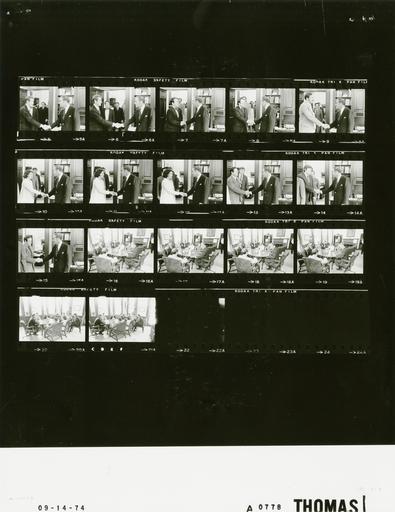 | Keywords: Ford A0778 NLGRF photo contact sheet (1974-09-14)(Gerald Ford Library).jpg White House Photographic Office WHPO is housed at the Gerald R Ford Presidential Library a branch of the National Archives and Records Administration NARA <br/><br/> This file is a 200 dpi photo contact sheet having images from roll of film A0778 of the August 9 1974 - January 20 1977 Gerald R Ford White House Photographic Office Series A0001-A9999 and B0001-B2886 photographs <br/><br/> The date on the photo contact sheet is the date the roll of film was processed not necessarily the date the photographs were taken See table below for additional details 1974-09-14 Gerald R Ford Presidential Library Image http //www fordlibrarymuseum gov/library/whphotos/A0778_NLGRF jpg A0778_NLGRF jpg from http //www fordlibrarymuseum gov/library/whphotos/19740914whpo pdf White House Photographs September 14 1974 of the http //www fordlibrarymuseum gov/Library/whphotos/whpo asp White House Photographic Collection page White House Photographic Office WHPO - Thomas PD-USGov Institution Institution Gerald R Ford Presidential Library Table wikitable sortable + Photo contact sheet A0778 U S President Ford Administration Gerald R Ford Library Frame s Tone Subject proper Subject generic Names Geographic Location Photographer Date - 5-15 BW Presidential Personnel Office handshaking - photo opportunity Haig Personnel Office staff Personnel Office - Old Executive Office Building OEOB Thomas 1974-09-14 - 16-21 BW Presidential Personnel Office talking seated around table Haig Personnel Office staff Personnel Office - Old Executive Office Building OEOB Thomas 1974-09-14 Gerald R Ford Presidential Library and Museum-cooperation PD-USGov Contact sheets by the Ford White House September 1974 |