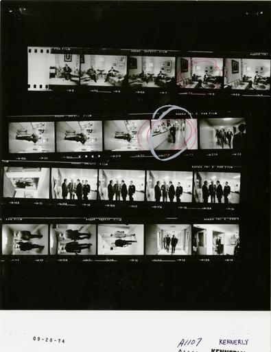 Keywords: Ford A1107 NLGRF photo contact sheet (1974-09-28)(Gerald Ford Library).jpg White House Photographic Office WHPO is housed at the Gerald R Ford Presidential Library a branch of the National Archives and Records Administration NARA <br/><br/> This file is a 200 dpi photo contact sheet having images from roll of film A1107 of the August 9 1974 - January 20 1977 Gerald R Ford White House Photographic Office Series A0001-A9999 and B0001-B2886 photographs <br/><br/> The date on the photo contact sheet is the date the roll of film was processed not necessarily the date the photographs were taken See table below for additional details 1974-09-28 Gerald R Ford Presidential Library Image http //www fordlibrarymuseum gov/library/whphotos/A1107_NLGRF jpg A1107_NLGRF jpg from http //www fordlibrarymuseum gov/library/whphotos/19740928whpo pdf White House Photographs September 28 1974 of the http //www fordlibrarymuseum gov/Library/whphotos/whpo asp White House Photographic Collection page White House Photographic Office WHPO <br/> Creator David Hume Kennerly PD-USGov Institution Institution Gerald R Ford Presidential Library Table wikitable sortable + Photo contact sheet A1107 U S President Ford Administration Gerald R Ford Library Frame s Tone Subject proper Subject generic Names Geographic Location Photographer Date - 4A BW Trip to Hospital to visit Betty Ford -Bethesda Maryland seated talking GRF Billy Zeoli Bethesda MD Bethesda Naval Hospital - President's Suite Kennerly 1974-09-28 - 5A-8A BW Trip to Hospital to visit Betty Ford -Bethesda Maryland seated Mike reading newspaper GRF Mike Ford Bethesda MD Bethesda Naval Hospital - President's Suite Kennerly 1974-09-28 - 9A-12A BW Trip to Hospital to visit Betty Ford -Bethesda Maryland walking talking; various angles GRF Chester Ward Bethesda MD Bethesda Naval Hospital - Hallway Kennerly 1974-09-28 - 13A-14A BW Trip to Hospital to visit Betty Ford -Bethesda Maryland standing talking GRF Lukash Bethesda MD Bethesda Naval Hospital - Examination Room Kennerly 1974-09-28 - 15A-18A BW Trip to Hospital to visit Betty Ford -Bethesda Maryland standing talking GRF Lukash Chester Ward Keiser Bethesda MD Bethesda Naval Hospital - Hallway Kennerly 1974-09-28 - 19A-22A BW Trip to Hospital to visit Betty Ford -Bethesda Maryland standing talking in front of nurses station GRF Lukash Bethesda MD Bethesda Naval Hospital - Hallway Kennerly 1974-09-28 - 23A BW Trip to Hospital to visit Betty Ford -Bethesda Maryland walking; moving toward camera GRF Marsh Secret Service Bethesda MD Bethesda Naval Hospital - Hallway Kennerly 1974-09-28 Gerald R Ford Presidential Library and Museum-cooperation PD-USGov Contact sheets by the Ford White House September 1974 Photographs by David Hume Kennerly from 1974 |