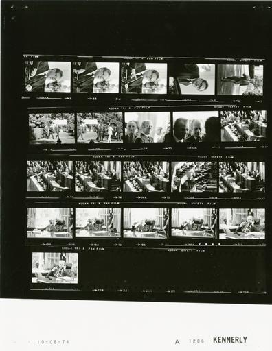 | Keywords: Ford A1286 NLGRF photo contact sheet (1974-10-08)(Gerald Ford Library).jpg White House Photographic Office WHPO is housed at the Gerald R Ford Presidential Library a branch of the National Archives and Records Administration NARA <br/><br/> This file is a 200 dpi photo contact sheet having images from roll of film A1286 of the August 9 1974 - January 20 1977 Gerald R Ford White House Photographic Office Series A0001-A9999 and B0001-B2886 photographs <br/><br/> The date on the photo contact sheet is the date the roll of film was processed not necessarily the date the photographs were taken See table below for additional details 1974-10-08 Gerald R Ford Presidential Library Image http //www fordlibrarymuseum gov/library/whphotos/A1286_NLGRF jpg A1286_NLGRF jpg from http //www fordlibrarymuseum gov/library/whphotos/19741008whpo pdf White House Photographs October 8 1974 of the http //www fordlibrarymuseum gov/Library/whphotos/whpo asp White House Photographic Collection page White House Photographic Office WHPO <br/> Creator David Hume Kennerly PD-USGov Institution Institution Gerald R Ford Presidential Library Table wikitable sortable + Photo contact sheet A1286 U S President Ford Administration Gerald R Ford Library Frame s Tone Subject proper Subject generic Names Geographic Location Photographer Date - 11A-16A BW Address to a Joint Session of Congress on the Economy WIN Speech GRF speaking from podium - medium range shot GRF Speaker Albert President Pro tem Eastland Others Washington DC United States Capitol -House Chamber Kennerly 1974-10-08 - 17A BW seated; talking on telephone holding pipe GRF Oval Office Kennerly 1974-10-08 - 18A BW seated; talking on telephone smoking pipe GRF Oval Office Kennerly 1974-10-08 - 19A BW seated; talking on telephone holding pipe GRF Oval Office Kennerly 1974-10-08 - 20A-22A BW seated; talking on telephone smoking pipe GRF Oval Office Kennerly 1974-10-08 - 2A-5A BW seated talking - head and shoulder portrait s Kissinger Oval Office Kennerly 1974-10-08 - 6A BW walking across lawn smoking pipe Seidman South Lawn Kennerly 1974-10-08 - 7A-8A BW Departure to Address to a Joint Session of Congress on the Economy WIN Speech walking approaching limousine GRF Sec Simon Greenspan Others South Driveway Kennerly 1974-10-08 - 9A-10A BW Escort Committee Prior to Address to a Joint Session of Congress on the Economy WIN Speech smiling -all not in every frame GRF Sen Mansfield Others Washington DC United States Capitol -Holding Room Kennerly 1974-10-08 Gerald R Ford Presidential Library and Museum-cooperation PD-USGov Contact sheets by the Ford White House October 1974 Photographs by David Hume Kennerly from 1974 |