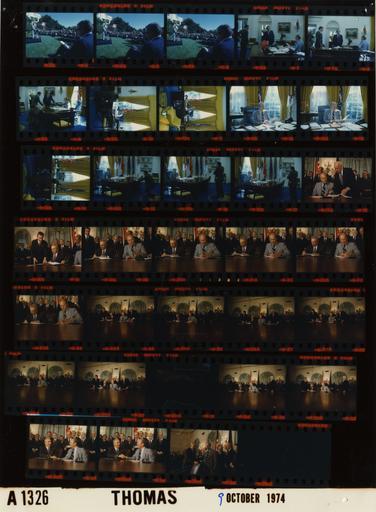 | Keywords: Ford A1326 NLGRF photo contact sheet (1974-10-09)(Gerald Ford Library).jpg  White House Photographic Office WHPO is housed at the Gerald R Ford Presidential Library a branch of the National Archives and Records Administration NARA <br/><br/> This file is a 200 dpi photo contact sheet having images from roll of film A1326 of the August 9 1974 - January 20 1977 Gerald R Ford White House Photographic Office Series A0001-A9999 and B0001-B2886 photographs <br/><br/> The date on the photo contact sheet is the date the roll of film was processed not necessarily the date the photographs were taken See table below for additional details 1974-10-09 Gerald R Ford Presidential Library Image http //www fordlibrarymuseum gov/library/whphotos/A1326_NLGRF jpg A1326_NLGRF jpg from http //www fordlibrarymuseum gov/library/whphotos/19741009whpo pdf White House Photographs October 9 1974 of the http //www fordlibrarymuseum gov/Library/whphotos/whpo asp White House Photographic Collection page White House Photographic Office WHPO - Thomas PD-USGov Institution Institution Gerald R Ford Presidential Library Table wikitable sortable + Photo contact sheet A1326 U S President Ford Administration Gerald R Ford Library Frame s Tone Subject proper Subject generic Names Geographic Location Photographer Date - 24A-29A Color Signing Joint Statements on the Development of Economic Industrial and Technical Cooperation and Principles of U S - Polish Relations GRF and Gierek seated at table signing documents - long shots GRF First Secretary Edward Gierek Others Cabinet Room Thomas 1974-10-09 - 30A Color Thomas 1974-10-09 - 31A-32A Color Signing Joint Statements on the Development of Economic Industrial and Technical Cooperation and Principles of U S - Polish Relations GRF and Gierek seated at table signing documents - long shots GRF First Secretary Edward Gierek Mieczyslaw Jagielski Stefan Olszowski Ryszard Frelek Witold Trampczynski Benon Stranz Wlodzimierz Wisniewski Others Cabinet Room Thomas 1974-10-09 - 33A-34A Color Following Signing Joint Statements on the Development of Economic Industrial and Technical Cooperation and Principles of U S -Polish Relations GRF and Gierek handshaking; others standing behind GRF First Secretary Edward Gierek Mieczyslaw Jagielski Stefan Olszowski Ryszard Frelek Witold Trampczynski Benon Stranz Wlodzimierz Wisniewski Others Cabinet Room Thomas 1974-10-09 - 35A Color Following Signing Joint Statements on the Development of Economic Industrial and Technical Cooperation and Principles of U S -Polish Relations GRF and Gierek walking from table GRF First Secretary Edward Gierek Mieczyslaw Jagielski Stefan Olszowski Ryszard Frelek Witold Trampczynski Benon Stranz Wlodzimierz Wisniewski Others Cabinet Room Thomas 1974-10-09 - 3A-5A Color Second Press Conference GRF at podium media seated - GRF profile taken from right over left shoulder of reporter GRF Media Secret Service Rose Garden Thomas 1974-10-09 - 6A Color GRF seated at desk others standing GRF Rumsfeld Nessen Oval Office Thomas 1974-10-09 - 7A-8A Color Black Star Photographer GRF seated at desk others standing -Ward shooting photographs GRF Rumsfeld Nessen Fred Ward Oval Office Thomas 1974-10-09 - 9A-10A Color Black Star Photographer GRF seated at desk - Ward shooting photographs GRF Fred Ward Oval Office Thomas 1974-10-09 - 11A-12A Color seated at desk GRF Oval Office Thomas 1974-10-09 - 13A Color Black Star Photographer seated at desk - long shot; Ward crouched by desk GRF Fred Ward Oval Office Thomas 1974-10-09 - 14A-16A Color Black Star Photographer GRF seated at desk - Ward shooting photographs GRF Fred Ward Oval Office Thomas 1974-10-09 - 17A Color Prior to Signing Joint Statements on the Development of Economic Industrial and Technical Cooperation and Principles of U S -Polish Relations GRF seated at table looking at document GRF Others Cabinet Room Thomas 1974-10-09 - 18A Color Prior to Signing Joint Statements on the Development of Economic Industrial and Technical Cooperation and Principles of U S -Polish Relations Gierek seated at table looking at document First Secretary Edward Gierek Others Cabinet Room Thomas 1974-10-09 - 19A-23A Color Signing Joint Statements on the Development of Economic Industrial and Technical Cooperation and Principles of U S - Polish Relations GRF and Gierek seated at table signing documents GRF First Secretary Edward Gierek Others Cabinet Room Thomas 1974-10-09 Gerald R Ford Presidential Library and Museum-cooperation PD-USGov Contact sheets by the Ford White House October 1974 |