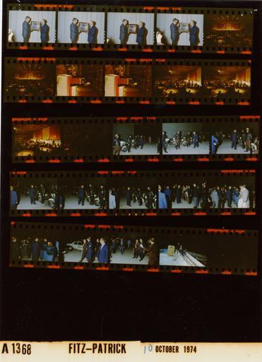 Keywords: Ford A1368 NLGRF photo contact sheet (1974-10-10)(Gerald Ford Library).jpg White House Photographic Office WHPO is housed at the Gerald R Ford Presidential Library a branch of the National Archives and Records Administration NARA <br/><br/> This file is a 200 dpi photo contact sheet having images from roll of film A1368 of the August 9 1974 - January 20 1977 Gerald R Ford White House Photographic Office Series A0001-A9999 and B0001-B2886 photographs <br/><br/> The date on the photo contact sheet is the date the roll of film was processed not necessarily the date the photographs were taken See table below for additional details 1974-10-10 Gerald R Ford Presidential Library Image http //www fordlibrarymuseum gov/library/whphotos/A1368_NLGRF jpg A1368_NLGRF jpg from http //www fordlibrarymuseum gov/library/whphotos/19741010whpo pdf White House Photographs October 10 1974 of the http //www fordlibrarymuseum gov/Library/whphotos/whpo asp White House Photographic Collection page White House Photographic Office WHPO - Fitz-Patrick PD-USGov Institution Institution Gerald R Ford Presidential Library Table wikitable sortable + Photo contact sheet A1368 U S President Ford Administration Gerald R Ford Library Frame s Tone Subject proper Subject generic Names Geographic Location Photographer Date - 4-7 Color Prior to Michigan Republicans Salute the President Dinner -Detroit Michigan holding framed photos of raft called the USS GERALD FORD GRF Unidentified Man Detroit MI Convention Hall Cobo Hall -Detroit Civic Center Fitz-Patrick 1974-10-10 - 8-9 Color Michigan Republicans Salute the President Dinner -Detroit Michigan speaker at podium - long shot taken from back of room GRF Guests Detroit MI Convention Hall Cobo Hall -Detroit Civic Center Fitz-Patrick 1974-10-10 - 10-11 Color Michigan Republicans Salute the President Dinner -Detroit Michigan GRF at podium; Platform Guests seated behind - medium shot taken from left GRF Guests Detroit MI Convention Hall Cobo Hall -Detroit Civic Center Fitz-Patrick 1974-10-10 - 12-14 Color Michigan Republicans Salute the President Dinner -Detroit Michigan GRF at podium; Guests seated foreground -medium shot taken from above GRF Guests Detroit MI Convention Hall Cobo Hall -Detroit Civic Center Fitz-Patrick 1974-10-10 - 15 Color Fitz-Patrick 1974-10-10 - 16-24 Color Prior to Departure from Metropolitan Airport Following Michigan Republicans Salute the President Dinner -Romulus Michigan greeting handshaking GRF Police Officers Romulus MI Detroit Wayne County Metropolitan Airport - Tarmac Fitz-Patrick 1974-10-10 - 25-26 Color Prior to Departure from Metropolitan Airport Following Michigan Republicans Salute the President Dinner -Romulus Michigan walking talking to CBS News correspondent GRF Phil Jones Romulus MI Detroit Wayne County Metropolitan Airport - Tarmac Fitz-Patrick 1974-10-10 - 27 Color Prior to Departure from Metropolitan Airport Following Michigan Republicans Salute the President Dinner -Romulus Michigan waving from steps of Air Force One GRF Romulus MI Detroit Wayne County Metropolitan Airport - Tarmac Fitz-Patrick 1974-10-10 Gerald R Ford Presidential Library and Museum-cooperation PD-USGov Contact sheets by the Ford White House October 1974 |