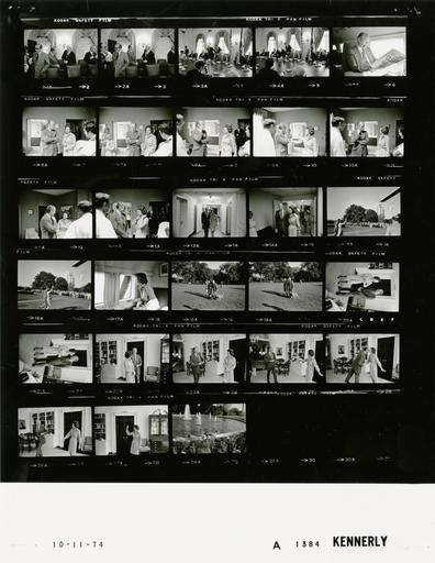 | Keywords: Ford A1384 NLGRF photo contact sheet (1974-10-11)(Gerald Ford Library).jpg White House Photographic Office WHPO is housed at the Gerald R Ford Presidential Library a branch of the National Archives and Records Administration NARA <br/><br/> This file is a 200 dpi photo contact sheet having images from roll of film A1384 of the August 9 1974 - January 20 1977 Gerald R Ford White House Photographic Office Series A0001-A9999 and B0001-B2886 photographs <br/><br/> The date on the photo contact sheet is the date the roll of film was processed not necessarily the date the photographs were taken See table below for additional details 1974-10-11 Gerald R Ford Presidential Library Image http //www fordlibrarymuseum gov/library/whphotos/A1384_NLGRF jpg A1384_NLGRF jpg from http //www fordlibrarymuseum gov/library/whphotos/19741011whpo pdf White House Photographs October 11 1974 of the http //www fordlibrarymuseum gov/Library/whphotos/whpo asp White House Photographic Collection page White House Photographic Office WHPO <br/> Creator David Hume Kennerly PD-USGov Institution Institution Gerald R Ford Presidential Library Table wikitable sortable + Photo contact sheet A1384 U S President Ford Administration Gerald R Ford Library Frame s Tone Subject proper Subject generic Names Geographic Location Photographer Date - 2-3 BW Permanent Representative of the U S to the United Nations; Attorney General - Prior to the Cabinet Meeting standing talking in small groups Amb Scali Burch Saxbe Buchen Others Cabinet Room Kennerly 1974-10-11 - 4-5 BW Cabinet Meeting seated at table - all not in every frame Armstrong Sec Morton Buchen GRF Secs Schlesinger Dent; Others Cabinet Room Kennerly 1974-10-11 - 6 BW Flight to Bethesda Naval Hospital seated reading newspaper - smoking pipe GRF Marine One Kennerly 1974-10-11 - 7-13 BW Mrs Ford's Surgeon; Prior to discharge of Mrs Ford from the Hospital following Cancer Surgery - Bethesda Maryland standing talking laughing GRF Betty Ford Howe Dr Capt William Prouty Lukash Bethesda MD Bethesda Naval Hospital - President's Suite Kennerly 1974-10-11 - 14-15 BW Prior to discharge of Mrs Ford from the Hospital following Cancer Surgery -Bethesda Maryland walking arm in arm GRF Betty Ford Bethesda MD Bethesda Naval Hospital - Hallway outside the President's Suite Kennerly 1974-10-11 - 16-17 BW Following discharge of Mrs Ford from the Hospital following Cancer Surgery -Bethesda Maryland walking toward helicopter waving GRF Betty Ford Media Bethesda MD Bethesda Naval Hospital - Heliport Kennerly 1974-10-11 - 18 BW Flight from Bethesda Naval Hospital following Mrs Ford's discharge seated looking out window copter Betty Ford Marine One Kennerly 1974-10-11 - 19-20 BW Return to White House following Mrs Ford's discharge from Bethesda Naval Hospital walking across lawn waving GRF Betty Ford Susan Ford Janet Ford Liberty South Lawn Kennerly 1974-10-11 - 21 BW Return to White House following Mrs Ford's discharge from Bethesda Naval Hospital standing talking GRF Betty Ford Second Floor - West Sitting Room Kennerly 1974-10-11 - 22 BW Return to White House following Mrs Ford's discharge from Bethesda Naval Hospital standing kissing GRF Betty Ford Second Floor - West Sitting Room Kennerly 1974-10-11 - 23-25 BW Return to White House following Mrs Ford's discharge from Bethesda Naval Hospital standing talking GRF Betty Ford Second Floor - West Sitting Room Kennerly 1974-10-11 - 26 BW Return to White House following Mrs Ford's discharge from Bethesda Naval Hospital standing kissing GRF Betty Ford Second Floor - West Sitting Room Kennerly 1974-10-11 - 27 BW Return to White House following Mrs Ford's discharge from Bethesda Naval Hospital walking apart GRF Betty Ford Second Floor - West Sitting Room Kennerly 1974-10-11 - 28 BW Return to White House following Mrs Ford's discharge from Bethesda Naval Hospital standing waving Betty Ford Second Floor - West Sitting Room Kennerly 1974-10-11 - 29 BW Pet Golden Retriever dog swimming in fountain Liberty South Lawn Fountain Kennerly 1974-10-11 Gerald R Ford Presidential Library and Museum-cooperation PD-USGov Contact sheets by the Ford White House October 1974 Photographs by David Hume Kennerly from 1974 Golden Retriever Dogs and fountains |