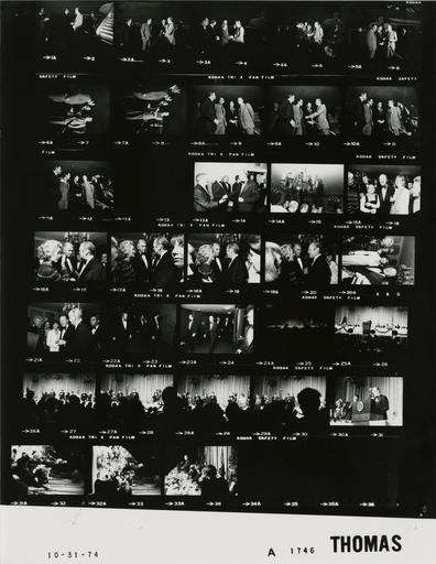 Keywords: Ford A1746 NLGRF photo contact sheet (1974-10-31)(Gerald Ford Library).jpg White House Photographic Office WHPO is housed at the Gerald R Ford Presidential Library a branch of the National Archives and Records Administration NARA <br/><br/> This file is a 200 dpi photo contact sheet having images from roll of film A1746 of the August 9 1974 - January 20 1977 Gerald R Ford White House Photographic Office Series A0001-A9999 and B0001-B2886 photographs <br/><br/> The date on the photo contact sheet is the date the roll of film was processed not necessarily the date the photographs were taken See table below for additional details 1974-10-31 Gerald R Ford Presidential Library Image http //www fordlibrarymuseum gov/library/whphotos/A1746_NLGRF jpg A1746_NLGRF jpg from http //www fordlibrarymuseum gov/library/whphotos/19741031whpo pdf White House Photographs October 31 1974 of the http //www fordlibrarymuseum gov/Library/whphotos/whpo asp White House Photographic Collection page White House Photographic Office WHPO - Thomas PD-USGov Institution Institution Gerald R Ford Presidential Library Table wikitable sortable + Photo contact sheet A1746 U S President Ford Administration Gerald R Ford Library Frame s Tone Subject proper Subject generic Names Geographic Location Photographer Date - 25-26 BW California Republican Fundraising Dinner; Comedian; Governor and United States Representative from California; State Comptroller; Chairman Republican State Committee; Republican Finance Committee Member - Los Angeles California Hope at podium; others seated; all not in every frame formal wear GRF Bob Hope Gov Reagan; Mr Mrs Houston Flournoy Lt Gov Mrs John Harmer; Mr Mrs Evelle Younger; Mr Mrs Brian Van Camp; Mr Murphy Mrs Sandstrom; Mr Mrs Bill Richardson; J P Guerin John Kehoe Mr Mrs Banowsky Los Angeles CA Century Plaza Hotel - Los Angeles Ballroom Thomas 1974-10-31 - 27-30 BW California Republican Fundraising Dinner; Comedian; Governor and United States Representative from California; State Comptroller; Chairman Republican State Committee; Republican Finance Committee Member - Los Angeles California Flournoy at podium introducing GRF; others standing applauding; all not in every frame formal wear GRF Bob Hope Gov Reagan; Mr Mrs Houston Flournoy Lt Gov Mrs John Harmer; Mr Mrs Evelle Younger; Mr Mrs Brian Van Camp; Mr Murphy Mrs Sandstrom; Mr Mrs Bill Richardson; J P Guerin John Kehoe Mr Mrs Banowsky Los Angeles CA Century Plaza Hotel - Los Angeles Ballroom Thomas 1974-10-31 - 31-34 BW California Republican Fundraising Dinner; Comedian; Governor and United States Representative from California; State Comptroller; Chairman Republican State Committee; Republican Finance Committee Member - Los Angeles California GRF at podium; others seated; all not in every frame formal wear GRF Bob Hope Gov Reagan; Mr Mrs Houston Flournoy Lt Gov Mrs John Harmer; Mr Mrs Evelle Younger; Mr Mrs Brian Van Camp; Mr Murphy Mrs Sandstrom; Mr Mrs Bill Richardson; J P Guerin John Kehoe Mr Mrs Banowsky Los Angeles CA Century Plaza Hotel - Los Angeles Ballroom Thomas 1974-10-31 - 2-12 BW Arrival Ceremony for Trip to California; Governor and United States Representative from California; State Comptroller; Chairman Republican State Committee; Republican Finance Committee Member - Los Angeles California greeting handshaking talking; all not in every frame GRF Gov Reagan Rep Rousselot Houston Flournoy Gordon Luce Margaret Brock Robert Hillman Others Los Angeles CA Los Angeles International Airport Thomas 1974-10-31 - 13 BW Thomas 1974-10-31 - 14-15 BW VIP Reception Prior to California Republican Fundraising Dinner - Los Angeles California greeting handshaking; formal wear GRF Others Los Angeles CA Century Plaza Hotel - Pacific Palisades Room Thomas 1974-10-31 - 16 BW VIP Reception Prior to California Republican Fundraising Dinner - Los Angeles California posing; formal wear GRF Others Los Angeles CA Century Plaza Hotel - Pacific Palisades Room Thomas 1974-10-31 - 17-20 BW VIP Reception Prior to California Republican Fundraising Dinner; Actor -Los Angeles California standing talking; formal wear GRF James Jimmy Gloria Stewart Others Los Angeles CA Century Plaza Hotel - Pacific Palisades Room Thomas 1974-10-31 - 21-22 BW VIP Reception Prior to California Republican Fundraising Dinner - Los Angeles California posing; formal wear GRF Others Los Angeles CA Century Plaza Hotel - Pacific Palisades Room Thomas 1974-10-31 - 23-24 BW Prior to California Republican Fundraising Dinner -Los Angeles California walking towards Los Angeles Ballroom; formal wear GRF Others Los Angeles CA Century Plaza Hotel - Hallway Thomas 1974-10-31 Gerald R Ford Presidential Library and Museum-cooperation PD-USGov Contact sheets by the Ford White House October 1974 Century Plaza Hotel |