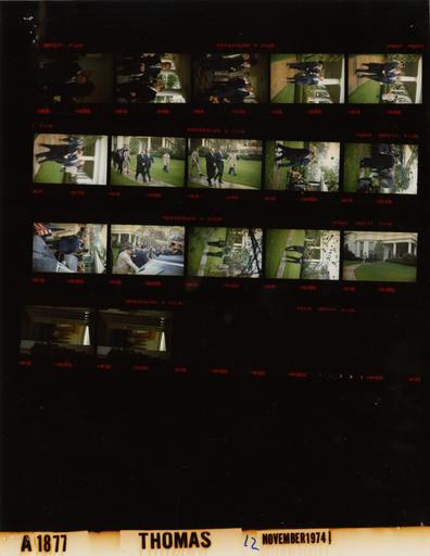 | Keywords: Ford A1877 NLGRF photo contact sheet (1974-11-12)(Gerald Ford Library).jpg White House Photographic Office WHPO is housed at the Gerald R Ford Presidential Library a branch of the National Archives and Records Administration NARA <br/><br/> This file is a 200 dpi photo contact sheet having images from roll of film A1877 of the August 9 1974 - January 20 1977 Gerald R Ford White House Photographic Office Series A0001-A9999 and B0001-B2886 photographs <br/><br/> The date on the photo contact sheet is the date the roll of film was processed not necessarily the date the photographs were taken See table below for additional details 1974-11-12 Gerald R Ford Presidential Library Image http //www fordlibrarymuseum gov/library/whphotos/A1877_NLGRF jpg A1877_NLGRF jpg from http //www fordlibrarymuseum gov/library/whphotos/19741112whpo pdf White House Photographs November 12 1974 of the http //www fordlibrarymuseum gov/Library/whphotos/whpo asp White House Photographic Collection page White House Photographic Office WHPO - Thomas PD-USGov Institution Institution Gerald R Ford Presidential Library Table wikitable sortable + Photo contact sheet A1877 U S President Ford Administration Gerald R Ford Library Frame s Tone Subject proper Subject generic Names Geographic Location Photographer Date - 2A Color Chancellor of the Federal Republic of Austria standing GRF Bruno Kreisky Scowcroft Scheduling and Advance Office Thomas 1974-11-12 - 3A-4A Color Chancellor of the Federal Republic of Austria standing talking GRF Bruno Kreisky Others Colonnade Thomas 1974-11-12 - 5A-11A Color Prior to Departure of the Chancellor of the Federal Republic of Austria walking talking - raining; moving past camera; some out of focus GRF Bruno Kreisky Others Sidewalk Between Oval Office and South Driveway Thomas 1974-11-12 - 12A-13A Color Prior to Departure of the Chancellor of the Federal Republic of Austria saying goodbye near open door of limousine - raining GRF Bruno Kreisky Others South Driveway Thomas 1974-11-12 - 14A-15A Color Following the Departure of the Chancellor of the Federal Republic of Austria returning to Oval Office; looking back towards driveway - raining GRF Kissinger Sidewalk Between Oval Office and South Driveway Thomas 1974-11-12 - 16A Color Following the Departure of the Chancellor of the Federal Republic of Austria returning to Oval Office - raining; long shot; Oval Office and Colonnade visible GRF Kissinger Sidewalk Between Oval Office and South Driveway Thomas 1974-11-12 - 17A-18A Color seated around desk; Kissinger's back to camera - taken through Scheduling and Advance Office doorway GRF Kissinger Oval Office Thomas 1974-11-12 Gerald R Ford Presidential Library and Museum-cooperation PD-USGov Contact sheets by the Ford White House November 1974 |