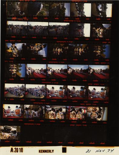 | Keywords: Ford A2010 NLGRF photo contact sheet (1974-11-21)(Gerald Ford Library).jpg White House Photographic Office WHPO is housed at the Gerald R Ford Presidential Library a branch of the National Archives and Records Administration NARA <br/><br/> This file is a 200 dpi photo contact sheet having images from roll of film A2010 of the August 9 1974 - January 20 1977 Gerald R Ford White House Photographic Office Series A0001-A9999 and B0001-B2886 photographs <br/><br/> The date on the photo contact sheet is the date the roll of film was processed not necessarily the date the photographs were taken See table below for additional details 1974-11-21 Gerald R Ford Presidential Library Image http //www fordlibrarymuseum gov/library/whphotos/A2010_NLGRF jpg A2010_NLGRF jpg from http //www fordlibrarymuseum gov/library/whphotos/19741121whpo pdf White House Photographs November 21 1974 of the http //www fordlibrarymuseum gov/Library/whphotos/whpo asp White House Photographic Collection page White House Photographic Office WHPO <br/> Creator David Hume Kennerly PD-USGov Institution Institution Gerald R Ford Presidential Library Table wikitable sortable + Photo contact sheet A2010 U S President Ford Administration Gerald R Ford Library Frame s Tone Subject proper Subject generic Names Geographic Location Photographer Date - 3A-5A Color Trip to Japan - 1st Visit to Japan by Sitting U S President - Tour of Residence for Shogun Rulers - Local Time walking across footbridge and through garden GRF Kyoto Japan Nijo Castle -Seiryuuen Garden Area Kennerly 1974-11-21 - 6A-20A Color Trip to Japan - 1st Visit to Japan by Sitting U S President - Tour of Residence for Shogun Rulers - Local Time GRF watching musicians perform; standing posing GRF Musicians Kyoto Japan Nijo Castle -Seiryuuen Garden Area Kennerly 1974-11-21 - 21A-22A Color Trip to Japan - 1st Visit to Japan by Sitting U S President - Tour of Residence for Shogun Rulers - Local Time standing behind rope; some extending microphones others taking photographs Media Kyoto Japan Nijo Castle -Seiryuuen Garden Area Kennerly 1974-11-21 - 23A-26A Color Trip to Japan - 1st Visit to Japan by Sitting U S President - Tour of Residence for Shogun Rulers - Local Time kneeling backs to camera Girls in Traditional Dress Kyoto Japan Nijo Castle -Seiryuuen Garden Area Kennerly 1974-11-21 - 27A-31A Color Trip to Japan - 1st Visit to Japan by Sitting U S President - Tour of Residence for Shogun Rulers - Local Time standing talking; some holding flags - all not in every frame GRF Girls in Traditional Dress Kyoto Japan Nijo Castle -Seiryuuen Garden Area Kennerly 1974-11-21 - 1A-2A Color Trip to Japan - 1st Visit to Japan by Sitting U S President - Tour of Residence for Shogun Rulers - Local Time Kyoto Japan Nijo Castle Kennerly 1974-11-21 Gerald R Ford Presidential Library and Museum-cooperation PD-USGov Contact sheets by the Ford White House November 1974 Photographs by David Hume Kennerly from 1974 |
