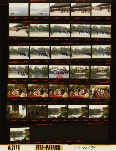 Keywords: Ford A2117 NLGRF photo contact sheet (1974-11-21)(Gerald Ford Library).jpg White House Photographic Office WHPO is housed at the Gerald R Ford Presidential Library a branch of the National Archives and Records Administration NARA <br/><br/> This file is a 200 dpi photo contact sheet having images from roll of film A2117 of the August 9 1974 - January 20 1977 Gerald R Ford White House Photographic Office Series A0001-A9999 and B0001-B2886 photographs <br/><br/> The date on the photo contact sheet is the date the roll of film was processed not necessarily the date the photographs were taken See table below for additional details 1974-11-21 Gerald R Ford Presidential Library Image http //www fordlibrarymuseum gov/library/whphotos/A2117_NLGRF jpg A2117_NLGRF jpg from http //www fordlibrarymuseum gov/library/whphotos/19741121whpo pdf White House Photographs November 21 1974 of the http //www fordlibrarymuseum gov/Library/whphotos/whpo asp White House Photographic Collection page White House Photographic Office WHPO - Fitz-Patrick PD-USGov Institution Institution Gerald R Ford Presidential Library Table wikitable sortable + Photo contact sheet A2117 U S President Ford Administration Gerald R Ford Library Frame s Tone Subject proper Subject generic Names Geographic Location Photographer Date - 3A-4A Color Trip to Japan - 1st Visit to Japan by Sitting U S President - Flight from Tokyo International Airport to Osaka International Airport - Local Time view of sea and landfall; wingtip in foreground Air Force One Fitz-Patrick 1974-11-21 - 5A-8A Color Trip to Japan - 1st Visit to Japan by Sitting U S President - Tour of Old Imperial Palace - Director of the Imperial Household in Kyoto - Local Time standing at top of steps GRF Tadashi Ishikawa Interpreter Kyoto Japan Old Imperial Palace - Shi Shin Den Coronation Building Fitz-Patrick 1974-11-21 - 9A Color Trip to Japan - 1st Visit to Japan by Sitting U S President - Tour of Old Imperial Palace - Local Time standing near bridge Kennerly Kyoto Japan Old Imperial Palace Fitz-Patrick 1974-11-21 - 10A-18A Color Trip to Japan - 1st Visit to Japan by Sitting U S President - Tour of Old Imperial Palace - Director of the Imperial Household in Kyoto - Local Time walking near bridge talking - all not in every frame GRF Kissinger Tadashi Ishikawa Others Kyoto Japan Old Imperial Palace - Near Kiaki-Bashi Bridge Fitz-Patrick 1974-11-21 - 19A Color Trip to Japan - 1st Visit to Japan by Sitting U S President - Tour of Old Imperial Palace - Director of the Imperial Household in Kyoto - Local Time standing on bridge looking at fish GRF Kissinger Tadashi Ishikawa Kyoto Japan Old Imperial Palace - Kiaki-Bashi Bridge Fitz-Patrick 1974-11-21 - 20A Color Trip to Japan - 1st Visit to Japan by Sitting U S President - Tour of Residence for Shogun Rulers - Local Time GRF and HAK removing shoes putting on slippers walking on red carpet GRF Kissinger Others Kyoto Japan Nijo Castle -Outside Big Hall Fitz-Patrick 1974-11-21 - 21A-22A Color Trip to Japan - 1st Visit to Japan by Sitting U S President - Tour of Residence for Shogun Rulers - Local Time structure Kyoto Japan Nijo Castle -Seiryuuen Garden Area Fitz-Patrick 1974-11-21 - 23A-27A Color Trip to Japan - 1st Visit to Japan by Sitting U S President - Tour of Residence for Shogun Rulers - Local Time women seated; GRF standing talking GRF Japanese Women in Traditional Dress Kyoto Japan Seiryuuen Garden Area - Nijo Castle Fitz-Patrick 1974-11-21 - 28A Color Trip to Japan - 1st Visit to Japan by Sitting U S President - Tour of Zen Buddhist Shrine - Local Time Kyoto Japan Kinkakuji Castle Gold Pavilion Fitz-Patrick 1974-11-21 - 29A Color Trip to Japan - 1st Visit to Japan by Sitting U S President - Tour of Zen Buddhist Shrine - Abbott of Gold Pavilion - Local Time talking walking toward Gold Pavilion GRF Jikai Murakami Others Kyoto Japan Kinkakuji Castle Gold Pavilion Fitz-Patrick 1974-11-21 - 30A-33A Color Trip to Japan - 1st Visit to Japan by Sitting U S President - Tour of Zen Buddhist Shrine - Abbott of Gold Pavilion - Local Time standing in Pavilion - long shots GRF Jikai Murakami Others Kyoto Japan Kinkakuji Castle Gold Pavilion Fitz-Patrick 1974-11-21 Gerald R Ford Presidential Library and Museum-cooperation PD-USGov Contact sheets by the Ford White House November 1974 |
