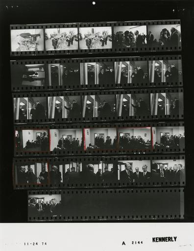 Keywords: Ford A2144 NLGRF photo contact sheet (1974-11-24)(Gerald Ford Library).jpg White House Photographic Office WHPO is housed at the Gerald R Ford Presidential Library a branch of the National Archives and Records Administration NARA <br/><br/> This file is a 200 dpi photo contact sheet having images from roll of film A2144 of the August 9 1974 - January 20 1977 Gerald R Ford White House Photographic Office Series A0001-A9999 and B0001-B2886 photographs <br/><br/> The date on the photo contact sheet is the date the roll of film was processed not necessarily the date the photographs were taken See table below for additional details 1974-11-24 Gerald R Ford Presidential Library Image http //www fordlibrarymuseum gov/library/whphotos/A2144_NLGRF jpg A2144_NLGRF jpg from http //www fordlibrarymuseum gov/library/whphotos/19741124whpo pdf White House Photographs November 24 1974 of the http //www fordlibrarymuseum gov/Library/whphotos/whpo asp White House Photographic Collection page White House Photographic Office WHPO <br/> Creator David Hume Kennerly PD-USGov Institution Institution Gerald R Ford Presidential Library Table wikitable sortable + Photo contact sheet A2144 U S President Ford Administration Gerald R Ford Library Frame s Tone Subject proper Subject generic Names Geographic Location Photographer Date - 3 BW Trip to the Union of Soviet Socialist Republics -Break During Meeting to Discuss Nuclear Arms Limitations and Signing Joint Communique - Local Time standing talking GRF Rumsfeld Vladivostok U S S R Okeansky Sanitarium -Conference Hall Kennerly 1974-11-24 - 4-5 BW Trip to the Union of Soviet Socialist Republics -Break During Meeting to Discuss Nuclear Arms Limitations and Signing Joint Communique - Local Time standing talking GRF Rumsfeld Kissinger Scowcroft Hyland Others Vladivostok U S S R Okeansky Sanitarium -Conference Hall Kennerly 1974-11-24 - 6-7 BW Trip to the Union of Soviet Socialist Republics -Break During Meeting to Discuss Nuclear Arms Limitations and Signing Joint Communique - Local Time talking; GRF and Nessen in foreground -Nessen wearing Russian wool cap GRF Nessen Others Vladivostok U S S R Okeansky Sanitarium -Conference Hall Kennerly 1974-11-24 - 8-17 BW Trip to the Union of Soviet Socialist Republics Local Time standing talking - images reflected in mirror on several frames -various angles GRF Kissinger Vladivostok U S S R Okeansky Sanitarium Kennerly 1974-11-24 - 18 BW Trip to the Union of Soviet Socialist Republics Local Time GRF and HAK seated GRF on telephone; Barrett standing in foreground GRF Rumsfeld Barrett Others Vladivostok U S S R Okeansky Sanitarium Kennerly 1974-11-24 - 19-22 BW Trip to the Union of Soviet Socialist Republics -Prior to Second Meeting to Discuss Nuclear Arms Limitations and Signing Joint Communique - Local Time GRF and HAK talking in foreground; Brezhnev and others entering room and walking toward camera GRF Kissinger Brezhnev Gromyko Amb Dobrynin Vladivostok U S S R Okeansky Sanitarium Kennerly 1974-11-24 - 23-25 BW Trip to the Union of Soviet Socialist Republics -Prior to Second Meeting to Discuss Nuclear Arms Limitations and Signing Joint Communique - Local Time standing talking Brezhnev Others Vladivostok U S S R Okeansky Sanitarium Kennerly 1974-11-24 - 26-28 BW Trip to the Union of Soviet Socialist Republics -Prior to Second Meeting to Discuss Nuclear Arms Limitations and Signing Joint Communique - Local Time standing talking smiling - Nessen in last frame GRF Russian Representatives Vladivostok U S S R Okeansky Sanitarium Kennerly 1974-11-24 Gerald R Ford Presidential Library and Museum-cooperation PD-USGov Contact sheets by the Ford White House November 1974 Photographs by David Hume Kennerly from 1974
