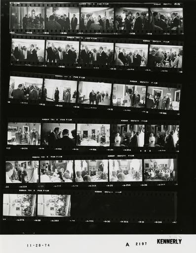 | Keywords: Ford A2197 NLGRF photo contact sheet (1974-11-28)(Gerald Ford Library).jpg White House Photographic Office WHPO is housed at the Gerald R Ford Presidential Library a branch of the National Archives and Records Administration NARA <br/><br/> This file is a 200 dpi photo contact sheet having images from roll of film A2197 of the August 9 1974 - January 20 1977 Gerald R Ford White House Photographic Office Series A0001-A9999 and B0001-B2886 photographs <br/><br/> The date on the photo contact sheet is the date the roll of film was processed not necessarily the date the photographs were taken See table below for additional details 1974-11-28 Gerald R Ford Presidential Library Image http //www fordlibrarymuseum gov/library/whphotos/A2197_NLGRF jpg A2197_NLGRF jpg from http //www fordlibrarymuseum gov/library/whphotos/19741128whpo pdf White House Photographs November 28 1974 of the http //www fordlibrarymuseum gov/Library/whphotos/whpo asp White House Photographic Collection page White House Photographic Office WHPO <br/> Creator David Hume Kennerly PD-USGov Institution Institution Gerald R Ford Presidential Library Table wikitable sortable + Photo contact sheet A2197 U S President Ford Administration Gerald R Ford Library Frame s Tone Subject proper Subject generic Names Geographic Location Photographer Date - 2A BW Prior to Thanksgiving Brunch for the 30-30 Club - 1930 Grand Rapids South High School Football Team standing talking Musicians Entrance Hall/Grand Hall Kennerly 1974-11-28 - 3A-12A BW Members of 30-30 Club; 1930 Grand Rapids South High School Football Team - Boyhood friend of GRF - Football Coach standing talking mingling; all not in every frame GRF Art Brown Silas Sikes McGee Cliff Gettings Others Ground Floor -Diplomatic Reception Room Kennerly 1974-11-28 - 13A-14A BW Member of 30-30 Club; 1930 Grand Rapids South High School Football Team walking talking GRF Silas Sikes McGee Ground Floor -Hallway Kennerly 1974-11-28 - 15A-17A BW Member of 30-30 Club; 1930 Grand Rapids South High School Football Team walking talking - all not in every frame GRF Silas Sikes McGee 30-30 Club Members Spouses Green Room Kennerly 1974-11-28 - 18A-19A BW Prior to Thanksgiving Brunch - 1930 Grand Rapids South High School Football Team standing talking - all not in frame GRF 30-30 Club Members Spouses Blue Room Kennerly 1974-11-28 - 20A-21A BW Thanksgiving Brunch -1930 Grand Rapids South High School Football Team GRF and couple standing in front of South High School banner GRF 30-30 Club Members Spouses Blue Room Kennerly 1974-11-28 - 22A-28A BW Thanksgiving Brunch -1930 Grand Rapids South High School Football Team seated around tables eating -all not in every frame; various angles and distances GRF 30-30 Club Members Spouses Blue Room Kennerly 1974-11-28 Gerald R Ford Presidential Library and Museum-cooperation PD-USGov Contact sheets by the Ford White House November 1974 Photographs by David Hume Kennerly from 1974 |