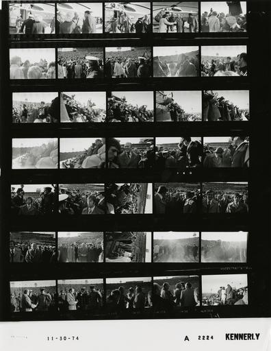 | Keywords: Ford A2224 NLGRF photo contact sheet (1974-11-30)(Gerald Ford Library).jpg White House Photographic Office WHPO is housed at the Gerald R Ford Presidential Library a branch of the National Archives and Records Administration NARA <br/><br/> This file is a 200 dpi photo contact sheet having images from roll of film A2224 of the August 9 1974 - January 20 1977 Gerald R Ford White House Photographic Office Series A0001-A9999 and B0001-B2886 photographs <br/><br/> The date on the photo contact sheet is the date the roll of film was processed not necessarily the date the photographs were taken See table below for additional details 1974-11-30 Gerald R Ford Presidential Library Image http //www fordlibrarymuseum gov/library/whphotos/A2224_NLGRF jpg A2224_NLGRF jpg from http //www fordlibrarymuseum gov/library/whphotos/19741130whpo pdf White House Photographs November 30 1974 of the http //www fordlibrarymuseum gov/Library/whphotos/whpo asp White House Photographic Collection page White House Photographic Office WHPO <br/> Creator David Hume Kennerly PD-USGov Institution Institution Gerald R Ford Presidential Library Table wikitable sortable + Photo contact sheet A2224 U S President Ford Administration Gerald R Ford Library Frame s Tone Subject proper Subject generic Names Geographic Location Photographer Date - 3-6 BW Arrival for 75th Army-Navy Football Game -Commandant 4th Naval District; Mayor of Philadelphia - Philadelphia Pennsylvania greeting handshaking in front of Marine One - all not in every frame GRF Rear Adm Mrs Joseph Coleman; Mayor Mrs Frank Rizzo; Schlesinger Philadelphia PA United States Naval Base Helipad Kennerly 1974-11-30 - 7-8 BW Arrival for 75th Army-Navy Football Game -Philadelphia Pennsylvania greeting handshaking GRF Crowd Philadelphia PA United States Naval Base Helipad Kennerly 1974-11-30 - 9-11 BW Arrival for 75th Army-Navy Football Game -Philadelphia Pennsylvania walking toward fifty yard line GRF Crowd Philadelphia PA John F Kennedy Stadium Kennerly 1974-11-30 - 12-13 BW Arrival for 75th Army-Navy Football Game -Captains Navy Football Team; captain Army Football Team - Philadelphia Pennsylvania standing for Anthem hands on hearts GRF Cliff Collier Tim Harden Robert Johnson Game Officials Philadelphia PA John F Kennedy Stadium Kennerly 1974-11-30 - 14-19 BW 75th Army-Navy Football Game - Naval Academy Superintendent; Secretary of the Navy - Philadelphia Pennsylvania seated on Navy side of field watching game - all not in every frame GRF Vice Adm William Mack J William Middendorf Others Philadelphia PA John F Kennedy Stadium Kennerly 1974-11-30 - 20-34 BW 75th Army-Navy Football Game - Naval Academy Superintendent Commander of Midshipmen; West Point Superintendent Captain of Corps of Cadets - Philadelphia Pennsylvania greeting handshaking; standing on fifty yard line - GRF moving from Navy to Army side at halftime; all not in every frame GRF Schlesinger Vice Adm William Mack Capt James Adams; Maj Gen Sidney Berry Capt James Abcouwer; Others Philadelphia PA John F Kennedy Stadium Kennerly 1974-11-30 - 35-36 BW 75th Army-Navy Football Game - Comedian Entertainer -Philadelphia Pennsylvania - Philadelphia Pennsylvania greeting handshaking in stands GRF Bob Hope Others Philadelphia PA John F Kennedy Stadium Kennerly 1974-11-30 - 37 BW 75th Army-Navy Football Game - Philadelphia Pennsylvania greeting handshaking in stands GRF Crowd Philadelphia PA John F Kennedy Stadium Kennerly 1974-11-30 Gerald R Ford Presidential Library and Museum-cooperation PD-USGov Contact sheets by the Ford White House November 1974 Photographs by David Hume Kennerly from 1974 |