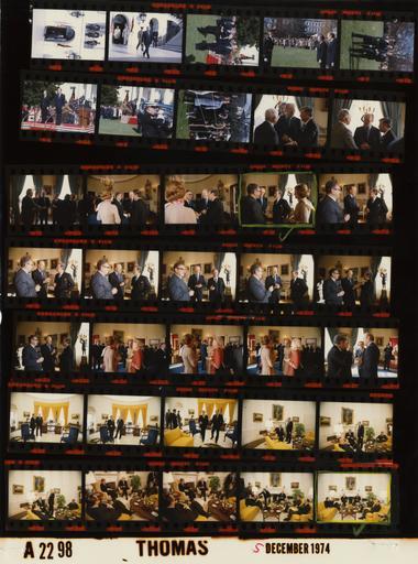 | Keywords: Ford A2298 NLGRF photo contact sheet (1974-12-05)(Gerald Ford Library).jpg White House Photographic Office WHPO is housed at the Gerald R Ford Presidential Library a branch of the National Archives and Records Administration NARA <br/><br/> This file is a 200 dpi photo contact sheet having images from roll of film A2298 of the August 9 1974 - January 20 1977 Gerald R Ford White House Photographic Office Series A0001-A9999 and B0001-B2886 photographs <br/><br/> The date on the photo contact sheet is the date the roll of film was processed not necessarily the date the photographs were taken See table below for additional details 1974-12-05 Gerald R Ford Presidential Library Image http //www fordlibrarymuseum gov/library/whphotos/A2298_NLGRF jpg A2298_NLGRF jpg from http //www fordlibrarymuseum gov/library/whphotos/19741205whpo pdf White House Photographs December 5 1974 of the http //www fordlibrarymuseum gov/Library/whphotos/whpo asp White House Photographic Collection page White House Photographic Office WHPO - Thomas PD-USGov Institution Institution Gerald R Ford Presidential Library Table wikitable sortable + Photo contact sheet A2298 U S President Ford Administration Gerald R Ford Library Frame s Tone Subject proper Subject generic Names Geographic Location Photographer Date - 24-26 Color Reception Following State Arrival Ceremony for Chancellor of the Federal Republic of Germany FRG West Germany standing talking Betty Ford Others Blue Room Thomas 1974-12-05 - 27 Color Reception Following State Arrival Ceremony for Chancellor of the Federal Republic of Germany FRG West Germany standing talking GRF Helmut Schmidt Kissinger Blue Room Thomas 1974-12-05 - 28-30 Color Visit of Chancellor of the Federal Republic of Germany FRG West Germany standing talking; walking towards fireplace GRF Helmut Schmidt Oval Office Thomas 1974-12-05 - 31-37 Color Meeting with Chancellor of the Federal Republic of Germany FRG West Germany - Minister of Foreign Affairs seated near fireplace talking - GRF standing in first three frames; all not in every frame GRF Helmut Schmidt Hans-Dietrich Genscher Kissinger Scowcroft Oval Office Thomas 1974-12-05 - 3-4 Color Prior to Visit of Chancellor of the Federal Republic of Germany FRG West Germany walking out of Diplomatic Reception Room door GRF South Driveway Thomas 1974-12-05 - 5-7 Color State Arrival Ceremony for Chancellor of the Federal Republic of Germany FRG West Germany walking across lawn to review Honor Guard GRF Helmut Schmidt South Lawn Thomas 1974-12-05 - 8 Color State Arrival Ceremony for Chancellor of the Federal Republic of Germany FRG West Germany standing on podium GRF Helmut Schmidt South Lawn Thomas 1974-12-05 - 9 Color State Arrival Ceremony for Chancellor of the Federal Republic of Germany FRG West Germany standing on podium; Marine Corps Band parading in foreground GRF Helmut Schmidt; Marine Corps Band South Lawn Thomas 1974-12-05 - 10 Color State Arrival Ceremony for Chancellor of the Federal Republic of Germany FRG West Germany standing watching Crowd South Lawn Thomas 1974-12-05 - 11-13 Color Reception Following State Arrival Ceremony for Chancellor of the Federal Republic of Germany FRG West Germany greeting handshaking GRF Helmut Schmidt Others Blue Room Thomas 1974-12-05 - 14-16 Color Reception Following State Arrival Ceremony for Chancellor of the Federal Republic of Germany FRG West Germany standing talking GRF Helmut Schmidt Kissinger Betty Ford Blue Room Thomas 1974-12-05 - 17-23 Color Reception Following State Arrival Ceremony for Chancellor of the Federal Republic of Germany FRG West Germany standing talking GRF Helmut Schmidt Kissinger Blue Room Thomas 1974-12-05 Gerald R Ford Presidential Library and Museum-cooperation PD-USGov Contact sheets by the Ford White House December 1974 |