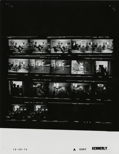 | Keywords: Ford A2307 NLGRF photo contact sheet (1974-12-05)(Gerald Ford Library).jpg White House Photographic Office WHPO is housed at the Gerald R Ford Presidential Library a branch of the National Archives and Records Administration NARA <br/><br/> This file is a 200 dpi photo contact sheet having images from roll of film A2307 of the August 9 1974 - January 20 1977 Gerald R Ford White House Photographic Office Series A0001-A9999 and B0001-B2886 photographs <br/><br/> The date on the photo contact sheet is the date the roll of film was processed not necessarily the date the photographs were taken See table below for additional details 1974-12-05 Gerald R Ford Presidential Library Image http //www fordlibrarymuseum gov/library/whphotos/A2307_NLGRF jpg A2307_NLGRF jpg from http //www fordlibrarymuseum gov/library/whphotos/19741205whpo pdf White House Photographs December 5 1974 of the http //www fordlibrarymuseum gov/Library/whphotos/whpo asp White House Photographic Collection page White House Photographic Office WHPO <br/> Creator David Hume Kennerly PD-USGov Institution Institution Gerald R Ford Presidential Library Table wikitable sortable + Photo contact sheet A2307 U S President Ford Administration Gerald R Ford Library Frame s Tone Subject proper Subject generic Names Geographic Location Photographer Date - 2A-7A BW President University of Chicago seated talking near fireplace -Rumsfeld in fourth frame GRF Levi Oval Office Kennerly 1974-12-05 - 8A-10A BW Pet Golden Retriever Susan kneeling on lawn taking photographs; dog lying nearby Susan Ford Liberty South Lawn Kennerly 1974-12-05 - 11A-12A BW standing talking GRF Rumsfeld Rumsfeld's Office Kennerly 1974-12-05 - 13A-18A BW Meeting with German and U S Officials to Discuss Economic and Energy Issues - Chancellor Federal Republic of Germany FRG seated around table talking - various angles and distances; all not in every frame GRF Helmut Schmidt Hans-Dietrich Genscher Manfred Schueler Klaus Boeling Kar-Otto Poehl Otto Schlect Adolph Schmidt Karl Buschmann Alwin Muenchmeyer Hans Merkl Dieter Hiss Peter Hermes Helmut Matthias Udo Loewke; Burns Simon Other Staff Blair House Kennerly 1974-12-05 Gerald R Ford Presidential Library and Museum-cooperation PD-USGov Contact sheets by the Ford White House December 1974 Photographs by David Hume Kennerly from 1974 |