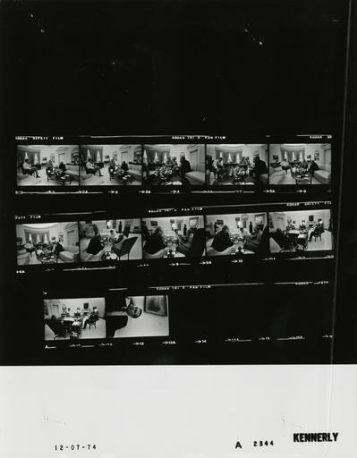 | Keywords: Ford A2344 NLGRF photo contact sheet (1974-12-07)(Gerald Ford Library).jpg White House Photographic Office WHPO is housed at the Gerald R Ford Presidential Library a branch of the National Archives and Records Administration NARA <br/><br/> This file is a 200 dpi photo contact sheet having images from roll of film A2344 of the August 9 1974 - January 20 1977 Gerald R Ford White House Photographic Office Series A0001-A9999 and B0001-B2886 photographs <br/><br/> The date on the photo contact sheet is the date the roll of film was processed not necessarily the date the photographs were taken See table below for additional details 1974-12-07 Gerald R Ford Presidential Library Image http //www fordlibrarymuseum gov/library/whphotos/A2344_NLGRF jpg A2344_NLGRF jpg from http //www fordlibrarymuseum gov/library/whphotos/19741207whpo pdf White House Photographs December 7 1974 of the http //www fordlibrarymuseum gov/Library/whphotos/whpo asp White House Photographic Collection page White House Photographic Office WHPO <br/> Creator David Hume Kennerly PD-USGov Institution Institution Gerald R Ford Presidential Library Table wikitable sortable + Photo contact sheet A2344 U S President Ford Administration Gerald R Ford Library Frame s Tone Subject proper Subject generic Names Geographic Location Photographer Date - 11-12 BW Partner with Debevoise Plimpton Lyons and Gates law firm Boston Massachusetts seated near fireplace -dog not in every frame GRF Two Unidentified Men Roswell B Perkins Oval Office Kennerly 1974-12-07 - 2-10 BW Liberty's Trainer - Pet Golden Retriever seated near fireplace -dog not in every frame GRF Bill Brockett Veterinarian Liberty Oval Office Kennerly 1974-12-07 - 13 BW seated waiting to enter Oval Office Rumsfeld Scheduling and Advance Office Kennerly 1974-12-07 Gerald R Ford Presidential Library and Museum-cooperation PD-USGov Contact sheets by the Ford White House December 1974 Photographs by David Hume Kennerly from 1974 |