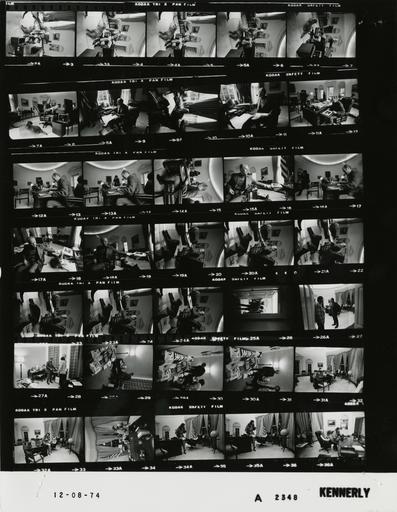 | Keywords: Ford A2348 NLGRF photo contact sheet (1974-12-08)(Gerald Ford Library).jpg White House Photographic Office WHPO is housed at the Gerald R Ford Presidential Library a branch of the National Archives and Records Administration NARA <br/><br/> This file is a 200 dpi photo contact sheet having images from roll of film A2348 of the August 9 1974 - January 20 1977 Gerald R Ford White House Photographic Office Series A0001-A9999 and B0001-B2886 photographs <br/><br/> The date on the photo contact sheet is the date the roll of film was processed not necessarily the date the photographs were taken See table below for additional details 1974-12-08 Gerald R Ford Presidential Library Image http //www fordlibrarymuseum gov/library/whphotos/A2348_NLGRF jpg A2348_NLGRF jpg from http //www fordlibrarymuseum gov/library/whphotos/19741208whpo pdf White House Photographs December 8 1974 of the http //www fordlibrarymuseum gov/Library/whphotos/whpo asp White House Photographic Collection page White House Photographic Office WHPO <br/> Creator David Hume Kennerly PD-USGov Institution Institution Gerald R Ford Presidential Library Table wikitable sortable + Photo contact sheet A2348 U S President Ford Administration Gerald R Ford Library Frame s Tone Subject proper Subject generic Names Geographic Location Photographer Date - 2A-7A BW Pet Golden Retriever GRF seated at desk slouched in chair smoking pipe; dog lying nearby GRF Liberty Oval Office Kennerly 1974-12-08 - 8A-10A BW Pet Golden Retriever GRF seated facing credenza behind desk; smoking pipe; dog not in all frames GRF Liberty Oval Office Kennerly 1974-12-08 - 11A-14A BW Photographer; Friend of Kennerly GRF seated at desk signing photographs smoking pipe; Burnett in background taking photographs GRF Dave Burnett Oval Office Kennerly 1974-12-08 - 15A-24A BW Pet Golden Retriever GRF seated facing credenza behind desk; smoking pipe; dog not in all frames GRF Liberty Oval Office Kennerly 1974-12-08 - 25A-26A BW Friend of GRF President Gospel Films Inc standing talking in doorway; taken from Scheduling and Advance Office GRF Billy Zeoli Oval Office Kennerly 1974-12-08 - 27A-30A BW Friend of GRF President Gospel Films Inc standing talking looking at WIN paraphernalia GRF Billy Zeoli President's Private Office Kennerly 1974-12-08 - 31A-35A BW Susan seated in President's chair; Mrs Ford sitting on edge of desk talking on telephone Betty Ford Susan Ford Oval Office Kennerly 1974-12-08 - 36A BW Susan seated in President's chair; Mrs Ford sitting on Susan's lap talking on telephone Betty Ford Susan Ford Oval Office Kennerly 1974-12-08 Gerald R Ford Presidential Library and Museum-cooperation PD-USGov Contact sheets by the Ford White House December 1974 Photographs by David Hume Kennerly from 1974 |