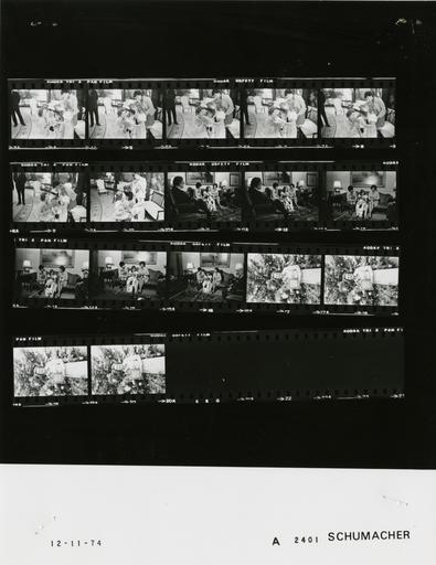 Keywords: Ford A2401 NLGRF photo contact sheet (1974-12-11)(Gerald Ford Library).jpg White House Photographic Office WHPO is housed at the Gerald R Ford Presidential Library a branch of the National Archives and Records Administration NARA <br/><br/> This file is a 200 dpi photo contact sheet having images from roll of film A2401 of the August 9 1974 - January 20 1977 Gerald R Ford White House Photographic Office Series A0001-A9999 and B0001-B2886 photographs <br/><br/> The date on the photo contact sheet is the date the roll of film was processed not necessarily the date the photographs were taken See table below for additional details 1974-12-11 Gerald R Ford Presidential Library Image http //www fordlibrarymuseum gov/library/whphotos/A2401_NLGRF jpg A2401_NLGRF jpg from http //www fordlibrarymuseum gov/library/whphotos/19741211whpo pdf White House Photographs December 11 1974 of the http //www fordlibrarymuseum gov/Library/whphotos/whpo asp White House Photographic Collection page White House Photographic Office WHPO - Schumacher PD-USGov Institution Institution Gerald R Ford Presidential Library Table wikitable sortable + Photo contact sheet A2401 U S President Ford Administration Gerald R Ford Library Frame s Tone Subject proper Subject generic Names Geographic Location Photographer Date - 4-10 BW March of Dimes Poster Child - Mother greeting talking - Mrs Ford stooping holding doll Betty Ford Jamie Weaver Brenda Weaver Ground Floor -Map Room Schumacher 1974-12-11 - 11-16 BW March of Dimes Poster Child - Mother; President March of Dimes; Poster Child Escort seated on couch talking - Nee and Thorner in some frames Betty Ford Jamie Weaver Brenda Weaver; Joseph Nee Everett Thorner Ground Floor -Map Room Schumacher 1974-12-11 - 17-20 BW standing in front of Christmas tree; holding plaque from the 2nd Division Betty Ford Blue Room Schumacher 1974-12-11 Gerald R Ford Presidential Library and Museum-cooperation PD-USGov Contact sheets by the Ford White House December 1974 |