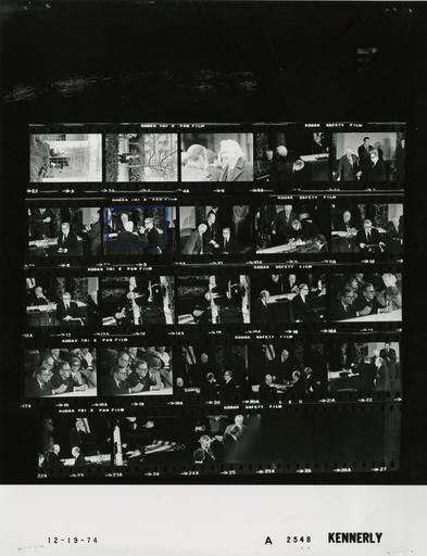| Keywords: Ford A2548 NLGRF photo contact sheet (1974-12-19)(Gerald Ford Library).jpg White House Photographic Office WHPO is housed at the Gerald R Ford Presidential Library a branch of the National Archives and Records Administration NARA <br/><br/> This file is a 200 dpi photo contact sheet having images from roll of film A2548 of the August 9 1974 - January 20 1977 Gerald R Ford White House Photographic Office Series A0001-A9999 and B0001-B2886 photographs <br/><br/> The date on the photo contact sheet is the date the roll of film was processed not necessarily the date the photographs were taken See table below for additional details 1974-12-19 Gerald R Ford Presidential Library Image http //www fordlibrarymuseum gov/library/whphotos/A2548_NLGRF jpg A2548_NLGRF jpg from http //www fordlibrarymuseum gov/library/whphotos/19741219whpo pdf White House Photographs December 19 1974 of the http //www fordlibrarymuseum gov/Library/whphotos/whpo asp White House Photographic Collection page White House Photographic Office WHPO <br/> Creator David Hume Kennerly PD-USGov Institution Institution Gerald R Ford Presidential Library Table wikitable sortable + Photo contact sheet A2548 U S President Ford Administration Gerald R Ford Library Frame s Tone Subject proper Subject generic Names Geographic Location Photographer Date - 3-4 BW walking towards driveway GRF Sidewalk Between Oval Office and South Driveway Kennerly 1974-12-19 - 5 BW Arrival for Swearing-in Ceremony of Nelson Rockefeller as Vice President greeting handshaking close-up GRF Burger Washington DC Sidewalk Outside U S Capitol Kennerly 1974-12-19 - 6-7 BW Prior to Swearing-in Ceremony of Nelson Rockefeller as Vice President walking taking positions - all not in every frame - taken from Gallery GRF Burger Rockefeller Others Washington DC United States Capitol -Senate Chamber Kennerly 1974-12-19 - 8 BW Prior to Swearing-in Ceremony of Nelson Rockefeller as Vice President standing holding bible - taken from Gallery Rockefeller Washington DC United States Capitol -Senate Chamber Kennerly 1974-12-19 - 9 BW Swearing-in Ceremony of Nelson Rockefeller as Vice President Burger and NAR standing with arms raised; Eastland seated behind - taken from Gallery Burger Rockefeller Eastland Washington DC United States Capitol -Senate Chamber Kennerly 1974-12-19 - 10 BW Swearing-in Ceremony of Nelson Rockefeller as Vice President moving around - taken from Gallery GRF Rockefeller Others Washington DC United States Capitol -Senate Chamber Kennerly 1974-12-19 - 11 BW Swearing-in Ceremony of Nelson Rockefeller as Vice President signing book as President of Senate - taken from Gallery Rockefeller Washington DC United States Capitol -Senate Chamber Kennerly 1974-12-19 - 12-16 BW Swearing-in Ceremony of Nelson Rockefeller as Vice President speaking at podium - NAR waving and GRF in last frame - taken from Gallery Rockefeller Washington DC United States Capitol -Senate Chamber Kennerly 1974-12-19 - 17-19 BW Swearing-in Ceremony of Nelson Rockefeller as Vice President seated listening to speaker - taken from Gallery Simon Kissinger Washington DC United States Capitol -Senate Chamber Gallery Kennerly 1974-12-19 - 20-23 BW Swearing-in Ceremony of Nelson Rockefeller as Vice President moving around - taken from Gallery; all not in every frame GRF Rockefeller Others Washington DC United States Capitol -Senate Chamber Kennerly 1974-12-19 - 24 BW Swearing-in Ceremony of Nelson Rockefeller as Vice President Eastland walking off podium; NAR trying President's Chair laughing - taken from Gallery Eastland Rockefeller Washington DC United States Capitol -Senate Chamber Kennerly 1974-12-19 - 25 BW Following Swearing-in Ceremony of Nelson Rockefeller as Vice President walking mingling GRF Sens Byrd Thurmond; Others Washington DC United States Capitol -Senate Chamber Kennerly 1974-12-19 Gerald R Ford Presidential Library and Museum-cooperation PD-USGov Contact sheets by the Ford White House December 1974 Photographs by David Hume Kennerly from 1974 |