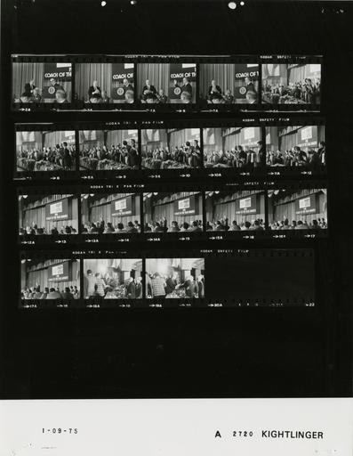 Keywords: Ford A2720 NLGRF photo contact sheet (1975-01-09)(Gerald Ford Library).jpg White House Photographic Office WHPO is housed at the Gerald R Ford Presidential Library a branch of the National Archives and Records Administration NARA <br/><br/> This file is a 200 dpi photo contact sheet having images from roll of film A2720 of the August 9 1974 - January 20 1977 Gerald R Ford White House Photographic Office Series A0001-A9999 and B0001-B2886 photographs <br/><br/> The date on the photo contact sheet is the date the roll of film was processed not necessarily the date the photographs were taken See table below for additional details 1975-01-09 Gerald R Ford Presidential Library Image http //www fordlibrarymuseum gov/library/whphotos/A2720_NLGRF jpg A2720_NLGRF jpg from http //www fordlibrarymuseum gov/library/whphotos/19750109whpo pdf White House Photographs January 9 1975 of the http //www fordlibrarymuseum gov/Library/whphotos/whpo asp White House Photographic Collection page White House Photographic Office WHPO - Kightlinger PD-USGov Institution Institution Gerald R Ford Presidential Library Table wikitable sortable + Photo contact sheet A2720 U S President Ford Administration Gerald R Ford Library Frame s Tone Subject proper Subject generic Names Geographic Location Photographer Date - 2A-5A BW Eastman Kodak American Football Coaches' Association Coaches of the Year Banquet - Chair Eastman Kodak Company Zornow at podium; GRF standing nearby holding football GRF Gerald Zornow Others Washington DC Washington Hilton Hotel Kightlinger 1975-01-09 - 6A-11A BW Eastman Kodak American Football Coaches' Association Coaches of the Year Banquet GRF standing near podium; others standing applauding - all not in every frame GRF Gerald Zornow Carmen Cozza Frank Kush Tubby Raymond Ben martin Jake Gaither Darrell Royal Jerry Claibourne Eddie Robinson Dee Andros Bob Blackman Dick Bartlett Bill Murray Rabbi Laszlo Lloyd Jordan Frank Welsh Bob Lund Others Washington DC Washington Hilton Hotel Kightlinger 1975-01-09 - 12A-17A BW Eastman Kodak American Football Coaches' Association Coaches of the Year Banquet GRF standing at podium speaking; others seated -all not in every frame GRF Gerald Zornow Carmen Cozza Frank Kush Tubby Raymond Ben martin Jake Gaither Darrell Royal Jerry Claibourne Eddie Robinson Dee Andros Bob Blackman Dick Bartlett Bill Murray Rabbi Laszlo Lloyd Jordan Frank Welsh Bob Lund Others Washington DC Washington Hilton Hotel Kightlinger 1975-01-09 - 18A-19A BW Eastman Kodak American Football Coaches' Association Coaches of the Year Banquet greeting handshaking GRF Guests Washington DC Washington Hilton Hotel Kightlinger 1975-01-09 Gerald R Ford Presidential Library and Museum-cooperation PD-USGov Contact sheets by the Ford White House January 1975 |