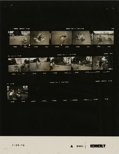 | Keywords: Ford A2851 NLGRF photo contact sheet (1975-01-18)(Gerald Ford Library).jpg White House Photographic Office WHPO is housed at the Gerald R Ford Presidential Library a branch of the National Archives and Records Administration NARA <br/><br/> This file is a 200 dpi photo contact sheet having images from roll of film A2851 of the August 9 1974 - January 20 1977 Gerald R Ford White House Photographic Office Series A0001-A9999 and B0001-B2886 photographs <br/><br/> The date on the photo contact sheet is the date the roll of film was processed not necessarily the date the photographs were taken See table below for additional details 1975-01-18 Gerald R Ford Presidential Library Image http //www fordlibrarymuseum gov/library/whphotos/A2851_NLGRF jpg A2851_NLGRF jpg from http //www fordlibrarymuseum gov/library/whphotos/19750118whpo pdf White House Photographs January 18 1975 of the http //www fordlibrarymuseum gov/Library/whphotos/whpo asp White House Photographic Collection page White House Photographic Office WHPO <br/> Creator David Hume Kennerly PD-USGov Institution Institution Gerald R Ford Presidential Library Table wikitable sortable + Photo contact sheet A2851 U S President Ford Administration Gerald R Ford Library Frame s Tone Subject proper Subject generic Names Geographic Location Photographer Date - 1A-7A BW Pet Golden Retriever Susan playing with dogs; Trainer Mavis Frieburg and Susan friend's in some frames Susan Ford Liberty Three Golden Retrievers South Lawn Kennerly 1975-01-18 - 8A-11A BW Pet Golden Retriever GRF standing on driveway holding papers under arms; Susan and girls leading dogs toward GRF -White House in background GRF Susan Ford Girl Friends Liberty Three Golden Retrievers South Lawn and Driveway Kennerly 1975-01-18 Gerald R Ford Presidential Library and Museum-cooperation PD-USGov Contact sheets by the Ford White House January 1975 Photographs by David Hume Kennerly from 1975 |