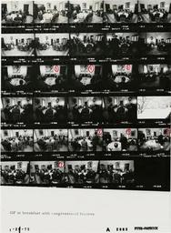 | Keywords: Ford A2863 NLGRF photo contact sheet (1975-01-21)(Gerald Ford Library).jpg White House Photographic Office WHPO is housed at the Gerald R Ford Presidential Library a branch of the National Archives and Records Administration NARA <br/><br/> This file is a 200 dpi photo contact sheet having images from roll of film A2863 of the August 9 1974 - January 20 1977 Gerald R Ford White House Photographic Office Series A0001-A9999 and B0001-B2886 photographs <br/><br/> The date on the photo contact sheet is the date the roll of film was processed not necessarily the date the photographs were taken See table below for additional details 1975-01-21 Gerald R Ford Presidential Library Image http //www fordlibrarymuseum gov/library/whphotos/A2863_NLGRF jpg A2863_NLGRF jpg from http //www fordlibrarymuseum gov/library/whphotos/19750121whpo pdf White House Photographs January 21 1975 of the http //www fordlibrarymuseum gov/Library/whphotos/whpo asp White House Photographic Collection page White House Photographic Office WHPO - Fitz-Patrick PD-USGov Institution Institution Gerald R Ford Presidential Library Table wikitable sortable + Photo contact sheet A2863 U S President Ford Administration Gerald R Ford Library Frame s Tone Subject proper Subject generic Names Geographic Location Photographer Date - 3A-21A BW Republican Congressional Leadership Breakfast seated around tables talking eating; White House Waiters in several frames - various angles and distances; all not in every frame GRF Sens Scott Griffin Curtis Tower Young Stafford Stevens; Reps Rhodes Michel Devine Edwards Conable Vander Jagt Cederberg Schneebli Quillen; Simon Rumsfeld Marsh Greenspan Zarb Friedersdorf Cannon Seidman Nessen State Floor - Family Dining Room Fitz-Patrick 1975-01-21 - 22A BW snow on ground; Oval Office in background Rose Garden Fitz-Patrick 1975-01-21 - 23A-31A BW Republican Congressional Leadership Breakfast seated around tables talking eating; White House Waiters in several frames - various angles and distances; all not in every frame GRF Sens Scott Griffin Curtis Tower Young Stafford Stevens; Reps Rhodes Michel Devine Edwards Conable Vander Jagt Cederberg Schneebli Quillen; Simon Rumsfeld Marsh Greenspan Zarb Friedersdorf Cannon Seidman Nessen State Floor - Family Dining Room Fitz-Patrick 1975-01-21 Gerald R Ford Presidential Library and Museum-cooperation PD-USGov Contact sheets by the Ford White House January 1975 |