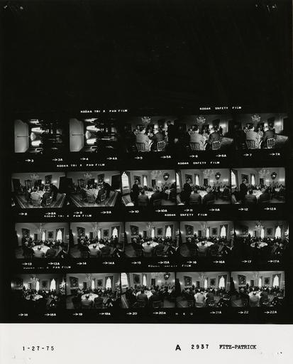 | Keywords: Ford A2937 NLGRF photo contact sheet (1975-01-27)(Gerald Ford Library).jpg White House Photographic Office WHPO is housed at the Gerald R Ford Presidential Library a branch of the National Archives and Records Administration NARA <br/><br/> This file is a 200 dpi photo contact sheet having images from roll of film A2937 of the August 9 1974 - January 20 1977 Gerald R Ford White House Photographic Office Series A0001-A9999 and B0001-B2886 photographs <br/><br/> The date on the photo contact sheet is the date the roll of film was processed not necessarily the date the photographs were taken See table below for additional details 1975-01-27 Gerald R Ford Presidential Library Image http //www fordlibrarymuseum gov/library/whphotos/A2937_NLGRF jpg A2937_NLGRF jpg from http //www fordlibrarymuseum gov/library/whphotos/19750127whpo pdf White House Photographs January 27 1975 of the http //www fordlibrarymuseum gov/Library/whphotos/whpo asp White House Photographic Collection page White House Photographic Office WHPO - Fitz-Patrick PD-USGov Institution Institution Gerald R Ford Presidential Library Table wikitable sortable + Photo contact sheet A2937 U S President Ford Administration Gerald R Ford Library Frame s Tone Subject proper Subject generic Names Geographic Location Photographer Date - 3-4 BW Republican Congressional Leadership Breakfast standing talking - silhouette; all not in frames GRF Rockefeller Sens Scott Griffin Tower Curtis Stevens Young Fannin; Reps Rhodes Anderson Devine Edwards Conable Vander Jagt Quillen Cederberg Schneblee Frey; Morton Simon Rumsfeld Hartmann Marsh Friedersdorf Zarb Kendall Loen First Floor Family Dining Room Fitz-Patrick 1975-01-27 - 5-22 BW Republican Congressional Leadership Breakfast seated eating talking - all not in every frame GRF Rockefeller Sens Scott Griffin Tower Curtis Stevens Young Fannin; Reps Rhodes Anderson Devine Edwards Conable Vander Jagt Quillen Cederberg Schneblee Frey; Morton Simon Rumsfeld Hartmann Marsh Friedersdorf Zarb Kendall Loen First Floor Family Dining Room Fitz-Patrick 1975-01-27 Gerald R Ford Presidential Library and Museum-cooperation PD-USGov Contact sheets by the Ford White House January 1975 |