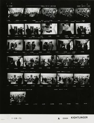 | Keywords: Ford A2964 NLGRF photo contact sheet (1975-01-28)(Gerald Ford Library).jpg  White House Photographic Office WHPO is housed at the Gerald R Ford Presidential Library a branch of the National Archives and Records Administration NARA <br/><br/> This file is a 200 dpi photo contact sheet having images from roll of film A2964 of the August 9 1974 - January 20 1977 Gerald R Ford White House Photographic Office Series A0001-A9999 and B0001-B2886 photographs <br/><br/> The date on the photo contact sheet is the date the roll of film was processed not necessarily the date the photographs were taken See table below for additional details 1975-01-28 Gerald R Ford Presidential Library Image http //www fordlibrarymuseum gov/library/whphotos/A2964_NLGRF jpg A2964_NLGRF jpg from http //www fordlibrarymuseum gov/library/whphotos/19750128whpo pdf White House Photographs January 28 1975 of the http //www fordlibrarymuseum gov/Library/whphotos/whpo asp White House Photographic Collection page White House Photographic Office WHPO - Kightlinger PD-USGov Institution Institution Gerald R Ford Presidential Library Table wikitable sortable + Photo contact sheet A2964 U S President Ford Administration Gerald R Ford Library Frame s Tone Subject proper Subject generic Names Geographic Location Photographer Date - 2A-6A BW Bipartisan Congressional Leadership Meeting seated at table; all not in every frame GRF SenScott Mansfield Griffin Byrd Curtis Long Stennis Thurmond Sparkman McClellan Young; Reps Albert O'Neill Michel McFall Ullman Schneebeli Price Morgan Broomfield; Kissinger Simon Zarb Ash Cole Buchen Rumsfeld Hartmann Marsh Cabinet Room Kightlinger 1975-01-28 - 7A-17A BW Prior to Meeting on Economy Zarb Ash Burns Seidman Greenspan Scheduling and Advance Office Kightlinger 1975-01-28 - 18A-23A BW Meeting on Economy seated near fireplace GRF Zarb Ash Burns Seidman Greenspan Simon Oval Office Kightlinger 1975-01-28 - 24A-27A BW Meeting with Peruvian Conservationist; Winner of J Paul Getty Wildlife Conservation Prize seated near fireplace GRF Mr Mrs Felipe Benavides Fernando Berckemeyer S Dillon Ripley Amb Frank Kellogg Train Russell Peterson Goldwin Oval Office Kightlinger 1975-01-28 Gerald R Ford Presidential Library and Museum-cooperation PD-USGov Contact sheets by the Ford White House January 1975 |
