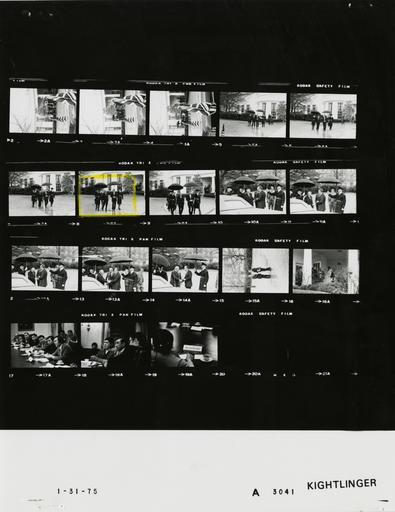 | Keywords: Ford A3041 NLGRF photo contact sheet (1975-01-31)(Gerald Ford Library).jpg White House Photographic Office WHPO is housed at the Gerald R Ford Presidential Library a branch of the National Archives and Records Administration NARA <br/><br/> This file is a 200 dpi photo contact sheet having images from roll of film A3041 of the August 9 1974 - January 20 1977 Gerald R Ford White House Photographic Office Series A0001-A9999 and B0001-B2886 photographs <br/><br/> The date on the photo contact sheet is the date the roll of film was processed not necessarily the date the photographs were taken See table below for additional details 1975-01-31 Gerald R Ford Presidential Library Image http //www fordlibrarymuseum gov/library/whphotos/A3041_NLGRF jpg A3041_NLGRF jpg from http //www fordlibrarymuseum gov/library/whphotos/19750131whpo pdf White House Photographs January 31 1975 of the http //www fordlibrarymuseum gov/Library/whphotos/whpo asp White House Photographic Collection page White House Photographic Office WHPO - Kightlinger PD-USGov Institution Institution Gerald R Ford Presidential Library Table wikitable sortable + Photo contact sheet A3041 U S President Ford Administration Gerald R Ford Library Frame s Tone Subject proper Subject generic Names Geographic Location Photographer Date - 2A-14A BW Departure of Prime Minister of Great Britain walking toward limousine; rain under umbrellas; Union Jack in foreground of first three frames GRF Kissinger Harold Wilson Others Sidewalk Between Oval Office and South Driveway Kightlinger 1975-01-31 - 15A BW Following Departure of Prime Minister of Great Britain standing talking handshaking in rain GRF Unidentified Man Sidewalk Between Oval Office and South Driveway Kightlinger 1975-01-31 - 16A BW standing talking outside Oval Office GRF Kennerly Others Colonnade Kightlinger 1975-01-31 - 17A-19A BW Meeting to Discuss Indian Affairs with National Tribal Leaders Native American seated at table; various angles; all not in every frame National Tribal Chairmen Cabinet Room Kightlinger 1975-01-31 Gerald R Ford Presidential Library and Museum-cooperation PD-USGov Contact sheets by the Ford White House January 1975 |