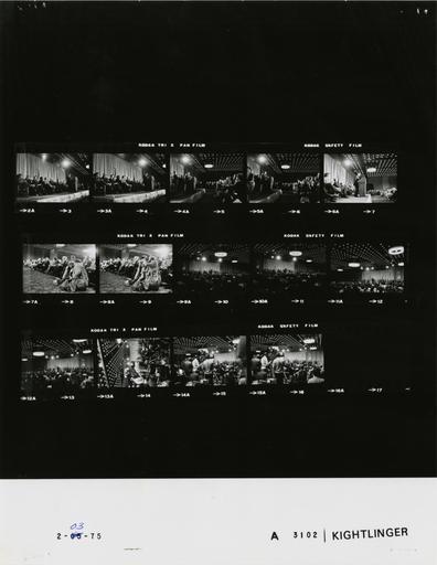 Keywords: Ford A3102 NLGRF photo contact sheet (1975-02-03)(Gerald Ford Library).jpg White House Photographic Office WHPO is housed at the Gerald R Ford Presidential Library a branch of the National Archives and Records Administration NARA <br/><br/> This file is a 200 dpi photo contact sheet having images from roll of film A3102 of the August 9 1974 - January 20 1977 Gerald R Ford White House Photographic Office Series A0001-A9999 and B0001-B2886 photographs <br/><br/> The date on the photo contact sheet is the date the roll of film was processed not necessarily the date the photographs were taken See table below for additional details 1975-02-03 Gerald R Ford Presidential Library Image http //www fordlibrarymuseum gov/library/whphotos/A3102_NLGRF jpg A3102_NLGRF jpg from http //www fordlibrarymuseum gov/library/whphotos/19750203whpo pdf White House Photographs February 3 1975 of the http //www fordlibrarymuseum gov/Library/whphotos/whpo asp White House Photographic Collection page White House Photographic Office WHPO - Kightlinger PD-USGov Institution Institution Gerald R Ford Presidential Library Table wikitable sortable + Photo contact sheet A3102 U S President Ford Administration Gerald R Ford Library Frame s Tone Subject proper Subject generic Names Geographic Location Photographer Date - 5-7 BW Trip to Atlanta Georgia - White House Conference on Domestic and Economic Affairs - Atlanta Georgia GRF at lectern speaking; Baroody and others seated behind podium GRF Baroody; Others Atlanta GA Hyatt Regency Hotel - Phoenix Room Kightlinger 1975-02-03 - 8-9 BW Trip to Atlanta Georgia - White House Conference on Domestic and Economic Affairs - Atlanta Georgia -American Actress and Photographer Kennerly and Bergen seated on floor DHK shooting photos; others seated behind Kennerly Candace Bergen; Crowd Atlanta GA Hyatt Regency Hotel - Phoenix Room Kightlinger 1975-02-03 - 10-16 BW Trip to Atlanta Georgia - White House Conference on Domestic and Economic Affairs - Atlanta Georgia -American Actress and Photographer GRF at lectern; various angles and distances; all n ot in every frame GRF Crowd Others Atlanta GA Hyatt Regency Hotel - Phoenix Room Kightlinger 1975-02-03 - 3-4 BW Trip to Atlanta Georgia - White House Conference on Domestic and Economic Affairs - Atlanta Georgia Baroody at lectern speaking; GRF and others seated behind podium GRF Baroody; Others Atlanta GA Hyatt Regency Hotel - Phoenix Room Kightlinger 1975-02-03 Gerald R Ford Presidential Library and Museum-cooperation PD-USGov Contact sheets by the Ford White House February 1975 |