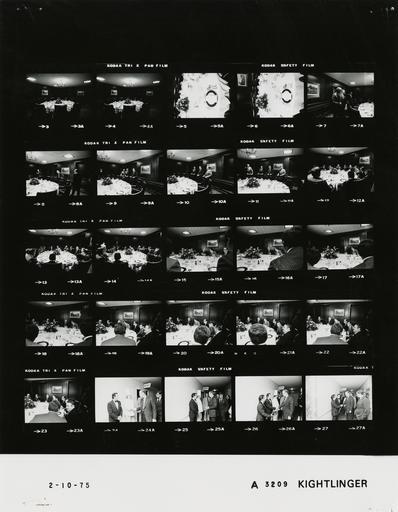 Keywords: Ford A3209 NLGRF photo contact sheet (1975-02-10)(Gerald Ford Library).jpg White House Photographic Office WHPO is housed at the Gerald R Ford Presidential Library a branch of the National Archives and Records Administration NARA <br/><br/> This file is a 200 dpi photo contact sheet having images from roll of film A3209 of the August 9 1974 - January 20 1977 Gerald R Ford White House Photographic Office Series A0001-A9999 and B0001-B2886 photographs <br/><br/> The date on the photo contact sheet is the date the roll of film was processed not necessarily the date the photographs were taken See table below for additional details 1975-02-10 Gerald R Ford Presidential Library Image http //www fordlibrarymuseum gov/library/whphotos/A3209_NLGRF jpg A3209_NLGRF jpg from http //www fordlibrarymuseum gov/library/whphotos/19750210whpo pdf White House Photographs February 10 1975 of the http //www fordlibrarymuseum gov/Library/whphotos/whpo asp White House Photographic Collection page White House Photographic Office WHPO - Kightlinger PD-USGov Institution Institution Gerald R Ford Presidential Library Table wikitable sortable + Photo contact sheet A3209 U S President Ford Administration Gerald R Ford Library Frame s Tone Subject proper Subject generic Names Geographic Location Photographer Date - 3-6 BW Trip to Houston Texas -Prior to Working Dinner With Southwestern Governors - Houston Texas Table Settings Houston TX Shamrock Hilton Hotel - Walnut Room Kightlinger 1975-02-10 - 7-23 BW Trip to Houston Texas -Working Dinner With Southwestern Governors -Houston Texas seated around table; various angles and distances; all not in every frame GRF Govs Briscoe Castro Apodaca Boren Pryor; Morton Hartmann Greenspan Zarb Nessen Cheney O'Neill Falk Houston TX Shamrock Hilton Hotel - Walnut Room Kightlinger 1975-02-10 - 24-27 BW Trip to Houston Texas -Photo Opportunity with Hotel Executive Chef - Houston Texas greeting handshaking standing talking; all not in every frame GRF Chef Hans John Others Houston TX Shamrock Hilton Hotel Kightlinger 1975-02-10 Gerald R Ford Presidential Library and Museum-cooperation PD-USGov Contact sheets by the Ford White House February 1975