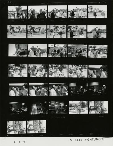 Keywords: Ford A3893 NLGRF photo contact sheet (1975-04-01)(Gerald Ford Library).jpg White House Photographic Office WHPO is housed at the Gerald R Ford Presidential Library a branch of the National Archives and Records Administration NARA <br/><br/> This file is a 200 dpi photo contact sheet having images from roll of film A3893 of the August 9 1974 - January 20 1977 Gerald R Ford White House Photographic Office Series A0001-A9999 and B0001-B2886 photographs <br/><br/> The date on the photo contact sheet is the date the roll of film was processed not necessarily the date the photographs were taken See table below for additional details 1975-04-01 Gerald R Ford Presidential Library Image http //www fordlibrarymuseum gov/library/whphotos/A3893_NLGRF jpg A3893_NLGRF jpg from http //www fordlibrarymuseum gov/library/whphotos/19750401whpo pdf White House Photographs April 1 1975 of the http //www fordlibrarymuseum gov/Library/whphotos/whpo asp White House Photographic Collection page White House Photographic Office WHPO - Kightlinger PD-USGov Institution Institution Gerald R Ford Presidential Library Table wikitable sortable + Photo contact sheet A3893 U S President Ford Administration Gerald R Ford Library Frame s Tone Subject proper Subject generic Names Geographic Location Photographer Date - 3-21 BW Vacation Trip to California -Playing Round of Golf - Rancho Mirage California various activities; all not in every frame; golf attire GRF Parma Fred Wilson Frank Jameson Others Rancho Mirage CA Thunderbird Country Club Kightlinger 1975-04-01 - 22-25 BW Vacation Trip to California -Entertainer Harris - Rancho Mirage California standing talking GRF Phil Harris Unidentified Man Rancho Mirage CA Thunderbird Country Club Kightlinger 1975-04-01 - 26-30 BW Vacation Trip to California -Following Round of Golf - Rancho Mirage California seated talking GRF Others Rancho Mirage CA Thunderbird Country Club - Locker Room Kightlinger 1975-04-01 - 31-34 BW Vacation Trip to California -Palm Springs California kissing standing talking near fountain; Parma in last frame GRF Betty Ford; Parma Palm Springs CA Presidential Vacation Residence Kightlinger 1975-04-01 Gerald R Ford Presidential Library and Museum-cooperation PD-USGov Contact sheets by the Ford White House April 1975 |