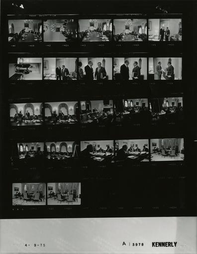 | Keywords: Ford A3978 NLGRF photo contact sheet (1975-04-09)(Gerald Ford Library).jpg  White House Photographic Office WHPO is housed at the Gerald R Ford Presidential Library a branch of the National Archives and Records Administration NARA <br/><br/> This file is a 200 dpi photo contact sheet having images from roll of film A3978 of the August 9 1974 - January 20 1977 Gerald R Ford White House Photographic Office Series A0001-A9999 and B0001-B2886 photographs <br/><br/> The date on the photo contact sheet is the date the roll of film was processed not necessarily the date the photographs were taken See table below for additional details 1975-04-09 Gerald R Ford Presidential Library Image http //www fordlibrarymuseum gov/library/whphotos/A3978_NLGRF jpg A3978_NLGRF jpg from http //www fordlibrarymuseum gov/library/whphotos/19750409whpo pdf White House Photographs April 9 1975 of the http //www fordlibrarymuseum gov/Library/whphotos/whpo asp White House Photographic Collection page White House Photographic Office WHPO <br/> Creator David Hume Kennerly PD-USGov Institution Institution Gerald R Ford Presidential Library Table wikitable sortable + Photo contact sheet A3978 U S President Ford Administration Gerald R Ford Library Frame s Tone Subject proper Subject generic Names Geographic Location Photographer Date - 1A-2A BW Prior to National Security Council NSC Meeting Weyand standing Brown seated; long shots Brown Weyand Cabinet Room Kennerly 1975-04-09 - 3A-4A BW Prior to National Security Council NSC Meeting Weyand and Brown seated; others standing on opposite side of table; long shots Brown Weyand Colby Schlesinger Cabinet Room Kennerly 1975-04-09 - 5A-9A BW Chairman Jewish Agency for Israel standing talking Kissinger Max Fisher Scheduling and Advance Office Kennerly 1975-04-09 - 10A BW standing talking Nessen Kissinger Scheduling and Advance Office Kennerly 1975-04-09 - 11A-12A BW Prior to National Security Council NSC Meeting Brown and Weyand seated others standing Scowcroft Kissinger Brown Weyand Colby Cabinet Room Kennerly 1975-04-09 - 13A-17A BW National Security Council NSC Meeting seated around table; Colby pointing at map in most frames; various angles; all not in every frame GRF Kissinger Schlesinger Brown Colby Ingersoll Clements Weyand Rumsfeld Scowcroft Smyser Habib Cabinet Room Kennerly 1975-04-09 - 18A-22A BW around desk; various angles and distances; all not in every frame GRF Marsh Hartmann Kissinger Scowcroft Rumsfeld Oval Office Kennerly 1975-04-09 Gerald R Ford Presidential Library and Museum-cooperation PD-USGov Contact sheets by the Ford White House April 1975 Photographs by David Hume Kennerly from 1975 |