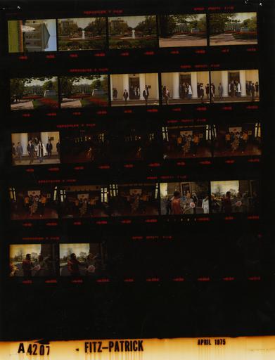 | Keywords: Ford A4207 NLGRF photo contact sheet (1975-04-27)(Gerald Ford Library).jpg White House Photographic Office WHPO is housed at the Gerald R Ford Presidential Library a branch of the National Archives and Records Administration NARA <br/><br/> This file is a 200 dpi photo contact sheet having images from roll of film A4207 of the August 9 1974 - January 20 1977 Gerald R Ford White House Photographic Office Series A0001-A9999 and B0001-B2886 photographs <br/><br/> The date on the photo contact sheet is the date the roll of film was processed not necessarily the date the photographs were taken See table below for additional details 1975-04-27 Gerald R Ford Presidential Library Image http //www fordlibrarymuseum gov/library/whphotos/A4207_NLGRF jpg A4207_NLGRF jpg from http //www fordlibrarymuseum gov/library/whphotos/19750427whpo pdf White House Photographs April 27 1975 of the http //www fordlibrarymuseum gov/Library/whphotos/whpo asp White House Photographic Collection page White House Photographic Office WHPO - Fitz-Patrick PD-USGov Institution Institution Gerald R Ford Presidential Library Table wikitable sortable + Photo contact sheet A4207 U S President Ford Administration Gerald R Ford Library Frame s Tone Subject proper Subject generic Names Geographic Location Photographer Date - 3 Color White House Exterior White House; fountain in foreground South Lawn Fitz-Patrick 1975-04-27 - 4-5 Color Old Executive Office Building OEOB ; fountain in foreground South Lawn Fitz-Patrick 1975-04-27 - 6-9 Color White House in background; statue in foreground Washington DC Lafayette Park Fitz-Patrick 1975-04-27 - 10-13 Color Following Sunday Services walking out door; handshaking GRF Rev David William Rev Charles Price; Mr Mrs John Hekman Others Washington DC St John's Episcopal Church - Outside Fitz-Patrick 1975-04-27 - 14-20 Color No Greater Love Rocking Chair Marathon Susan seated in rocking chair Susan Ford Students Washington DC Georgetown University Fitz-Patrick 1975-04-27 - 21-24 Color No Greater Love Rocking Chair Marathon walking talking; Susan holding bouquet Susan Ford Students Washington DC Georgetown University Fitz-Patrick 1975-04-27 Gerald R Ford Presidential Library and Museum-cooperation PD-USGov Contact sheets by the Ford White House April 1975 |