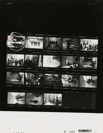 Keywords: Ford A4268 NLGRF photo contact sheet (1975-04-29)(Gerald Ford Library).jpg White House Photographic Office WHPO is housed at the Gerald R Ford Presidential Library a branch of the National Archives and Records Administration NARA <br/><br/> This file is a 200 dpi photo contact sheet having images from roll of film A4268 of the August 9 1974 - January 20 1977 Gerald R Ford White House Photographic Office Series A0001-A9999 and B0001-B2886 photographs <br/><br/> The date on the photo contact sheet is the date the roll of film was processed not necessarily the date the photographs were taken See table below for additional details 1975-04-29 Gerald R Ford Presidential Library Image http //www fordlibrarymuseum gov/library/whphotos/A4268_NLGRF jpg A4268_NLGRF jpg from http //www fordlibrarymuseum gov/library/whphotos/19750429whpo pdf White House Photographs April 29 1975 of the http //www fordlibrarymuseum gov/Library/whphotos/whpo asp White House Photographic Collection page White House Photographic Office WHPO <br/> Creator David Hume Kennerly PD-USGov Institution Institution Gerald R Ford Presidential Library Table wikitable sortable + Photo contact sheet A4268 U S President Ford Administration Gerald R Ford Library Frame s Tone Subject proper Subject generic Names Geographic Location Photographer Date - 2A BW Activity Regarding Evacuation of Saigon Vietnam Scowcroft walking out of room; serious expressions Kissinger Scowcroft Kissinger's West Wing Office Kennerly 1975-04-29 - 3A BW Prior to Press Conference Following Evacuation of Saigon Vietnam walking talking Kissinger Scowcroft Nessen Others Driveway Between White House and Old Executive Office Building OEOB Kennerly 1975-04-29 - 4A-9A BW Prior to Press Conference Following Evacuation of Saigon Vietnam walking talking greeting handshaking; all not in every frame Kissinger Scowcroft Nessen Others Old Executive Office Building OEOB Kennerly 1975-04-29 - 10A BW Press Conference Following Evacuation of Saigon Vietnam Nessen at podium Kissinger seated; taken from stage right Kissinger Nessen Old Executive Office Building OEOB -Room 450 Kennerly 1975-04-29 - 11A-12A BW Press Conference Following Evacuation of Saigon Vietnam seated; taken from stage right Kissinger Old Executive Office Building OEOB -Room 450 Kennerly 1975-04-29 - 13A-14A BW Press Conference Following Evacuation of Saigon Vietnam HAK at podium; Nessen seated in background; media in foreground; long shots taken from back of room Kissinger Nessen Media Old Executive Office Building OEOB -Room 450 Kennerly 1975-04-29 - 15A BW Golden Retriever GRF seated holding dog in lap GRF Puppy Colonnade Kennerly 1975-04-29 - 16A017A BW standing posing GRF Unidentified Girl Colonnade Kennerly 1975-04-29 - 18A BW Golden Retrievers GRF standing watching two dogs GRF Puppies Colonnade Kennerly 1975-04-29 - 10A BW GRF at desk looking in briefcase in background; O'Donnell walking in foreground GRF O'Donnell Oval Office Kennerly 1975-04-29 Gerald R Ford Presidential Library and Museum-cooperation PD-USGov Contact sheets by the Ford White House April 1975 Photographs by David Hume Kennerly from 1975