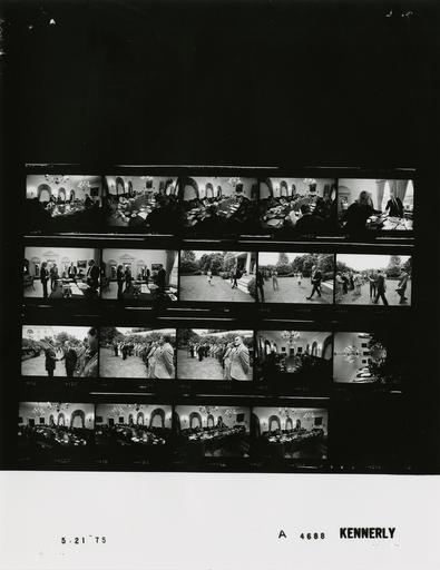 Keywords: Ford A4688 NLGRF photo contact sheet (1975-05-20)(Gerald Ford Library).jpg White House Photographic Office WHPO is housed at the Gerald R Ford Presidential Library a branch of the National Archives and Records Administration NARA <br/><br/> This file is a 200 dpi photo contact sheet having images from roll of film A4688 of the August 9 1974 - January 20 1977 Gerald R Ford White House Photographic Office Series A0001-A9999 and B0001-B2886 photographs <br/><br/> The date on the photo contact sheet is the date the roll of film was processed not necessarily the date the photographs were taken See table below for additional details 1975-05-20 Gerald R Ford Presidential Library Image http //www fordlibrarymuseum gov/library/whphotos/A4688_NLGRF jpg A4688_NLGRF jpg from http //www fordlibrarymuseum gov/library/whphotos/19750520whpo pdf White House Photographs May 20 1975 of the http //www fordlibrarymuseum gov/Library/whphotos/whpo asp White House Photographic Collection page White House Photographic Office WHPO <br/> Creator David Hume Kennerly PD-USGov Institution Institution Gerald R Ford Presidential Library Table wikitable sortable + Photo contact sheet A4688 U S President Ford Administration Gerald R Ford Library Frame s Tone Subject proper Subject generic Names Geographic Location Photographer Date - 2A-5A BW Meeting To Discuss Title IX seated around table; all not in frames GRF Weinberger Dunlop Lynn O'Neill Cannon Hills Marsh Bennett Greenspan Quern Chapman Roth Porter Parsons Rhinelander Holmes Gregory Lindh Hartmann Cabinet Room Kennerly 1975-05-20 - 6A-8A BW standing talking around desk GRF Schlesinger Rumsfeld Candice Bergen Oval Office Kennerly 1975-05-20 - 9A-14A BW Ceremony Honoring Small Business Award Recipients GRF walking across lawn; speaking into microphone others standing to either side GRF Small Business Award Recipients Rose Garden Kennerly 1975-05-21 - 15A-20A BW Meeting of the Labor-Management Committee seated around table; various angles and distances; all not in every frame GRF Murray Finley Frank Fitzsimmons Paul hall Lane Kirkland George Meany; Stephen Bechtel John Harper Reginald Jones Rawleigh Warner Arthur Wood Walter Wriston George Shultz; Simon Dunlop Seidman Zarb Greenspan Cabinet Room Kennerly 1975-05-21 Gerald R Ford Presidential Library and Museum-cooperation PD-USGov Contact sheets by the Ford White House May 1975 Photographs by David Hume Kennerly from 1975 |
