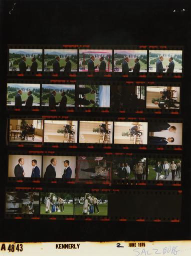 | Keywords: Ford A4843 NLGRF photo contact sheet (1975-06-02)(Gerald Ford Library).jpg White House Photographic Office WHPO is housed at the Gerald R Ford Presidential Library a branch of the National Archives and Records Administration NARA <br/><br/> This file is a 200 dpi photo contact sheet having images from roll of film A4843 of the August 9 1974 - January 20 1977 Gerald R Ford White House Photographic Office Series A0001-A9999 and B0001-B2886 photographs <br/><br/> The date on the photo contact sheet is the date the roll of film was processed not necessarily the date the photographs were taken See table below for additional details 1975-06-02 Gerald R Ford Presidential Library Image http //www fordlibrarymuseum gov/library/whphotos/A4843_NLGRF jpg A4843_NLGRF jpg from http //www fordlibrarymuseum gov/library/whphotos/19750602whpo pdf White House Photographs June 2 1975 of the http //www fordlibrarymuseum gov/Library/whphotos/whpo asp White House Photographic Collection page White House Photographic Office WHPO <br/> Creator David Hume Kennerly PD-USGov Institution Institution Gerald R Ford Presidential Library Table wikitable sortable + Photo contact sheet A4843 U S President Ford Administration Gerald R Ford Library Frame s Tone Subject proper Subject generic Names Geographic Location Photographer Date - 3--10 Color Trip to Austria - Meeting with President of Egypt standing talking near railing; lawn in background negs from first strip missing GRF Anwar Al-Sadat Salzburg Austria Hotel Schloss Klessheim -Grand Hall Patio Area Kennerly 1975-06-02 - 11-16 Color Trip to Austria - Meeting with President of Egypt seated talking near window; first frame dark 2nd obstructed GRF Anwar Al-Sadat Salzburg Austria Hotel Schloss Klessheim -Grand Hall Kennerly 1975-06-02 - 17-19 Color Trip to Austria standing talking; close ups GRF Unidentified Man Salzburg Austria Hotel Schloss Klessheim Kennerly 1975-06-02 - 20-25 Color Trip to Austria - Golf walking along path with caddys and golfing gear; standing at driving range GRF Lukash caddy Secret Service Salzburg Austria Hotel Schloss Klessheim -Golf Course Kennerly 1975-06-02 Gerald R Ford Presidential Library and Museum-cooperation PD-USGov Contact sheets by the Ford White House June 1975 Photographs by David Hume Kennerly from 1975 |
