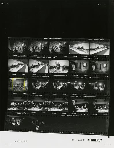 | Keywords: Ford A4847 NLGRF photo contact sheet (1975-06-01)(Gerald Ford Library).jpg White House Photographic Office WHPO is housed at the Gerald R Ford Presidential Library a branch of the National Archives and Records Administration NARA <br/><br/> This file is a 200 dpi photo contact sheet having images from roll of film A4847 of the August 9 1974 - January 20 1977 Gerald R Ford White House Photographic Office Series A0001-A9999 and B0001-B2886 photographs <br/><br/> The date on the photo contact sheet is the date the roll of film was processed not necessarily the date the photographs were taken See table below for additional details 1975-06-01 Gerald R Ford Presidential Library Image http //www fordlibrarymuseum gov/library/whphotos/A4847_NLGRF jpg A4847_NLGRF jpg from http //www fordlibrarymuseum gov/library/whphotos/19750601whpo pdf White House Photographs June 1 1975 of the http //www fordlibrarymuseum gov/Library/whphotos/whpo asp White House Photographic Collection page White House Photographic Office WHPO <br/> Creator David Hume Kennerly PD-USGov Institution Institution Gerald R Ford Presidential Library Table wikitable sortable + Photo contact sheet A4847 U S President Ford Administration Gerald R Ford Library Frame s Tone Subject proper Subject generic Names Geographic Location Photographer Date - 2A-4A BW Trip to Austria - Meeting with President of Egypt seated talking; Kissinger and Fahmi on far right GRF Anwar Al-Sadat Salzburg Austria Hotel Schloss Fuschl Kennerly 1975-06-01 - 5A--9A BW Trip to Austria - Luncheon Hosted by the President of Egypt seated at long table; all not in frames; Sadat standing offering toast in last frame GRF Anwar Al-Sadat Kissinger Rumsfeld Sisco Robinson Eilts Nessen Atherton Scowcroft saunders Oakley; Moubarek Fahmi Ahmad Abu Ismail Hassan Kamel Fawzi Abdel hafez Ashraf Marawan Fouad Teymour Gen Mahi Omar Serry Ashraf Ghorbal Salzburg Austria Hotel Schloss Fuschl - Luncheon Room Kennerly 1975-06-01 - 10A-11A BW Trip to Austria seated working at table; long shot taken from walkin closet; clothes in foreground GRF Salzburg Austria Hotel Schloss Klessheim President's Suite Kennerly 1975-06-01 - 12A BW Trip to Austria - Meeting with President of Egypt Prior to State Dinner Hosted by Chancellor Kreisky seated around coffee table GRF Anwar Al-Sadat Kissinger Sisco Moubarek Fahmi Salzburg Austria Residenz Kennerly 1975-06-01 - 13A-16A BW Trip to Austria - State Dinner Hosted by Chancellor Kreisky of Austria seated around round tables; GRF standing offering toast; all not in frames GRF Anwar Al-Sadat Kissinger Rumsfeld Sisco Robinson Eilts Nessen Atherton Scowcroft saunders Oakley; Moubarek Fahmi Ahmad Abu Ismail Hassan Kamel Fawzi Abdel Hafez Ashraf Marawan Fouad Teymour Ashraf Ghorbal; Betty Ford Kriesky Others Salzburg Austria Residenz -Knight Room Kennerly 1975-06-01 - 17A-19A BW Trip to Austria - State Dinner Hosted by Chancellor Kreisky of Austria seated around round tables; all standing offering toast; all not in frames GRF Anwar Al-Sadat Kissinger Rumsfeld Sisco Robinson Eilts Nessen Atherton Scowcroft saunders Oakley; Moubarek Fahmi Ahmad Abu Ismail Hassan Kamel Fawzi Abdel Hafez Ashraf Marawan Fouad Teymour Ashraf Ghorbal; Betty Ford Kriesky Others Salzburg Austria Residenz -Knight Room Kennerly 1975-06-01 - 20A-21A BW Trip to Austria - State Dinner Hosted by Chancellor Kreisky of Austria seated around round tables; Sadat standing offering toast; all not in frames GRF Anwar Al-Sadat Kissinger Rumsfeld Sisco Robinson Eilts Nessen Atherton Scowcroft saunders Oakley; Moubarek Fahmi Ahmad Abu Ismail Hassan Kamel Fawzi Abdel Hafez Ashraf Marawan Fouad Teymour Ashraf Ghorbal; Betty Ford Kriesky Others Salzburg Austria Residenz -Knight Room Kennerly 1975-06-01 - 22A-23A BW Trip to Austria - State Dinner Hosted by Chancellor Kreisky of Austria seated around round tables; all standing offering toast; all not in frames GRF Anwar Al-Sadat Kissinger Rumsfeld Sisco Robinson Eilts Nessen Atherton Scowcroft saunders Oakley; Moubarek Fahmi Ahmad Abu Ismail Hassan Kamel Fawzi Abdel Hafez Ashraf Marawan Fouad Teymour Ashraf Ghorbal; Betty Ford Kriesky Others Salzburg Austria Residenz -Knight Room Kennerly 1975-06-01 Gerald R Ford Presidential Library and Museum-cooperation PD-USGov Contact sheets by the Ford White House June 1975 Photographs by David Hume Kennerly from 1975 |