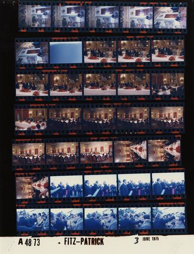 | Keywords: Ford A4873 NLGRF photo contact sheet (1975-06-03)(Gerald Ford Library).jpg White House Photographic Office WHPO is housed at the Gerald R Ford Presidential Library a branch of the National Archives and Records Administration NARA <br/><br/> This file is a 200 dpi photo contact sheet having images from roll of film A4873 of the August 9 1974 - January 20 1977 Gerald R Ford White House Photographic Office Series A0001-A9999 and B0001-B2886 photographs <br/><br/> The date on the photo contact sheet is the date the roll of film was processed not necessarily the date the photographs were taken See table below for additional details 1975-06-03 Gerald R Ford Presidential Library Image http //www fordlibrarymuseum gov/library/whphotos/A4873_NLGRF jpg A4873_NLGRF jpg from http //www fordlibrarymuseum gov/library/whphotos/19750603whpo pdf White House Photographs June 3 1975 of the http //www fordlibrarymuseum gov/Library/whphotos/whpo asp White House Photographic Collection page White House Photographic Office WHPO - Fitz-Patrick PD-USGov Institution Institution Gerald R Ford Presidential Library Table wikitable sortable + Photo contact sheet A4873 U S President Ford Administration Gerald R Ford Library Frame s Tone Subject proper Subject generic Names Geographic Location Photographer Date - 3A-8A Color Trip to Italy seated on floor sleeping under large painting Unidentified Photographer Rome Italy Quirinale Palace Fitz-Patrick 1975-06-03 - 9A Color Trip to Italy seated on floor sleeping under large painting Unidentified Photographer Rome Italy Fitz-Patrick 1975-06-03 - 10A-13A Color Trip to Italy; State Luncheon Hosted by President and First Lady Leone of Italy standing raising glasses for toast; all not in frames GRF Betty Ford President Mrs Leone Luncheon Guests Others Rome Italy Quirinale Palace - Salone delle Feste Fitz-Patrick 1975-06-03 - 14A-28A Color Trip to Italy; State Luncheon Hosted by President and First Lady Leone of Italy GRF standing offering toast; various angles and distances; all not in every frame GRF Betty Ford President Mrs Leone Luncheon Guests Others Rome Italy Quirinale Palace - Salone delle Feste Fitz-Patrick 1975-06-03 - 29A-30A Color Trip to Italy; State Luncheon Hosted by President and First Lady Leone of Italy standing raising glasses for toast; taken down length of table toward GRF; all not in frames GRF Betty Ford President Mrs Leone Luncheon Guests Others Rome Italy Quirinale Palace - Salone delle Feste Fitz-Patrick 1975-06-03 - 31A-34A Color Trip to Italy -Following Tour of the Vatican standing talking; all not in every frame GRF Betty Ford Archbishop Emanuele Clarizio; Amb Mrs Volpe Others Vatican City Rome Italy The Vatican - Oratorio de San Pietro Helipad Fitz-Patrick 1975-06-03 - 35A-39A Color Trip to Italy -Following Tour of the Vatican greeting handshaking GRF Crowd Vatican City Rome Italy The Vatican - Oratorio de San Pietro Helipad Fitz-Patrick 1975-06-03 Gerald R Ford Presidential Library and Museum-cooperation PD-USGov Contact sheets by the Ford White House June 1975 |