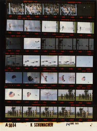Keywords: Ford A5084 NLGRF photo contact sheet (1975-06-14)(Gerald Ford Library).jpg White House Photographic Office WHPO is housed at the Gerald R Ford Presidential Library a branch of the National Archives and Records Administration NARA <br/><br/> This file is a 200 dpi photo contact sheet having images from roll of film A5084 of the August 9 1974 - January 20 1977 Gerald R Ford White House Photographic Office Series A0001-A9999 and B0001-B2886 photographs <br/><br/> The date on the photo contact sheet is the date the roll of film was processed not necessarily the date the photographs were taken See table below for additional details 1975-06-14 Gerald R Ford Presidential Library Image http //www fordlibrarymuseum gov/library/whphotos/A5084_NLGRF jpg A5084_NLGRF jpg from http //www fordlibrarymuseum gov/library/whphotos/19750614whpo pdf White House Photographs June 14 1975 of the http //www fordlibrarymuseum gov/Library/whphotos/whpo asp White House Photographic Collection page White House Photographic Office WHPO - Schumacher PD-USGov Institution Institution Gerald R Ford Presidential Library Table wikitable sortable + Photo contact sheet A5084 U S President Ford Administration Gerald R Ford Library Frame s Tone Subject proper Subject generic Names Geographic Location Photographer Date - 1-4 Color Trip to Georgia - 200th Anniversary of the U S Army Infantry - Columbus Georgia seated in grandstands watching Ranger demonstration GRF Military Officers Guests Crowd Columbus GA Fort Benning -Victory Pond Schumacher 1975-06-14 - 5-28 Color Trip to Georgia - 200th Anniversary of the U S Army Infantry - Columbus Georgia parachute and helicopter demonstrations Columbus GA Fort Benning -Eubanks Field Parachute Training Center Schumacher 1975-06-14 - 29-35 Color Trip to Georgia - 200th Anniversary of the U S Army Infantry - Columbus Georgia greeting handshaking; congratulating soldiers on demonstration; various angles; all not in every frame GRF Army Rangers Columbus GA Fort Benning -Eubanks Field Parachute Training Center Schumacher 1975-06-14 Gerald R Ford Presidential Library and Museum-cooperation PD-USGov Contact sheets by the Ford White House June 1975 |
