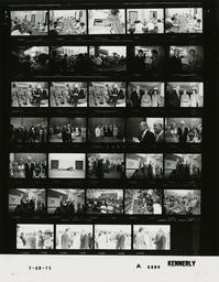 | Keywords: Ford A5388 NLGRF photo contact sheet (1975-07-03)(Gerald Ford Library).jpg White House Photographic Office WHPO is housed at the Gerald R Ford Presidential Library a branch of the National Archives and Records Administration NARA <br/><br/> This file is a 200 dpi photo contact sheet having images from roll of film A5388 of the August 9 1974 - January 20 1977 Gerald R Ford White House Photographic Office Series A0001-A9999 and B0001-B2886 photographs <br/><br/> The date on the photo contact sheet is the date the roll of film was processed not necessarily the date the photographs were taken See table below for additional details 1975-07-03 Gerald R Ford Presidential Library Image http //www fordlibrarymuseum gov/library/whphotos/A5388_NLGRF jpg A5388_NLGRF jpg from http //www fordlibrarymuseum gov/library/whphotos/19750703whpo pdf White House Photographs July 3 1975 of the http //www fordlibrarymuseum gov/Library/whphotos/whpo asp White House Photographic Collection page White House Photographic Office WHPO <br/> Creator David Hume Kennerly PD-USGov Institution Institution Gerald R Ford Presidential Library Table wikitable sortable + Photo contact sheet A5388 U S President Ford Administration Gerald R Ford Library Frame s Tone Subject proper Subject generic Names Geographic Location Photographer Date - 3A-7A BW Trip to Ohio -Meeting with the Citizens Committee on Environmental Quality - Cincinnati Ohio seated around table talking; all not in frame GRF Train Environmentlists Cincinnati OH National Environmental Research Center -Conference Room Kennerly 1975-07-03 - 8A-10A BW Trip to Ohio -Following Ohio River Valley White House Conference on Domestic and Economic Affairs - Cincinnati Ohio greeting handshaking mingling; all not in every frame; various angles and distances GRF Crowd Cincinnati OH Stouffer's Inn - Outside Kennerly 1975-07-03 - 11A-12A BW Trip to Ohio -Prior to Ohio River Valley White House Conference on Domestic and Economic Affairs - Cincinnati Ohio GRF receiving an award GRF Unidentified Man Cincinnati OH Stouffer's Inn Kennerly 1975-07-03 - 13A-15A BW Trip to Ohio -Prior to Ohio River Valley White House Conference on Domestic and Economic Affairs - Cleveland Ohio seated talking GRF Three Unidentified Man Cleveland OH Stouffer's Inn - VIP Room 214 Kennerly 1975-07-03 - 16A-21A BW Trip to Ohio -Reception Preceding the Ohio River Valley White House Conference on Domestic and Economic Affairs - Cleveland Ohio standing talking posing; all not in every frame GRF Others Cleveland OH Stouffer's Inn - VIP Room 214 Kennerly 1975-07-03 - 22A-23A BW Trip to Ohio -Prior to Ohio River Valley White House Conference on Domestic and Economic Affairs - Cincinnati Ohio standing posing GRF Two Young Women Cincinnati OH Stouffer's Inn Kennerly 1975-07-03 - 24A BW Trip to Ohio -Prior to Ohio River Valley White House Conference on Domestic and Economic Affairs - Cincinnati Ohio seated alone in large room GRF Cincinnati OH Stouffer's Inn Kennerly 1975-07-03 - 25A-32A BW Trip to Ohio -Ohio River Valley White House Conference on Domestic and Economic Affairs - Cincinnati Ohio various activities; all not in every frame; various angles and distances GRF Participants Audience Cincinnati OH Stouffer's Inn - Conference Room Kennerly 1975-07-03 - 33A-36A BW Trip to Ohio -Prior to Departure for Cleveland - Cincinnati Ohio greeting handshaking saying goodbye GRF Police Officers Others Cincinnati OH Greater Cincinnati Airport Kennerly 1975-07-03 Gerald R Ford Presidential Library and Museum-cooperation PD-USGov Contact sheets by the Ford White House July 1975 Photographs by David Hume Kennerly from 1975 |