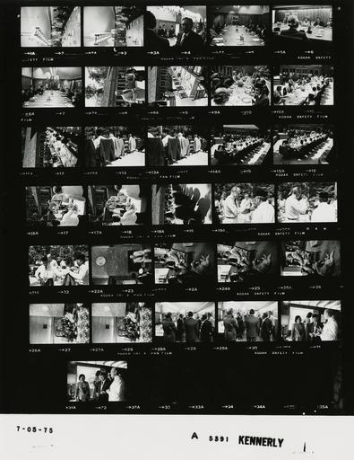 | Keywords: Ford A5391 NLGRF photo contact sheet (1975-07-05)(Gerald Ford Library).jpg White House Photographic Office WHPO is housed at the Gerald R Ford Presidential Library a branch of the National Archives and Records Administration NARA <br/><br/> This file is a 200 dpi photo contact sheet having images from roll of film A5391 of the August 9 1974 - January 20 1977 Gerald R Ford White House Photographic Office Series A0001-A9999 and B0001-B2886 photographs <br/><br/> The date on the photo contact sheet is the date the roll of film was processed not necessarily the date the photographs were taken See table below for additional details 1975-07-05 Gerald R Ford Presidential Library Image http //www fordlibrarymuseum gov/library/whphotos/A5391_NLGRF jpg A5391_NLGRF jpg from http //www fordlibrarymuseum gov/library/whphotos/19750705whpo pdf White House Photographs July 5 1975 of the http //www fordlibrarymuseum gov/Library/whphotos/whpo asp White House Photographic Collection page White House Photographic Office WHPO <br/> Creator David Hume Kennerly PD-USGov Institution Institution Gerald R Ford Presidential Library Table wikitable sortable + Photo contact sheet A5391 U S President Ford Administration Gerald R Ford Library Frame s Tone Subject proper Subject generic Names Geographic Location Photographer Date - 2-4 BW Trip to Camp David - Prior to Formal Talks With the President of the Republic of Indonesia - Thurmont Maryland standing talking near large table Kissinger White House Staff Thurmont MD Camp David -Laurel Lodge - Meeting Room Kennerly 1975-07-05 - 5-7 BW Trip to Camp David - Meeting With the President of the Republic of Indonesia - Thurmont Maryland seated talking around large table; various angles and distances; all not in every frame GRF President Suharto; Widjojo Nitisastro Kissinger Scowcroft; White House Staff; Indonesian Staff Thurmont MD Camp David -Laurel Lodge - Meeting Room Kennerly 1975-07-05 - 8-9 BW Trip to Camp David - Meeting With the President of the Republic of Indonesia - Thurmont Maryland standing talking away from others; table in foreground in 2nd frame GRF President Suharto Thurmont MD Camp David -Laurel Lodge - Patio Kennerly 1975-07-05 - 10-19 BW Trip to Camp David - Working Luncheon With the President of the Republic of Indonesia - Thurmont Maryland seated around large table; most are coatless; various angles and distances; all not in every frame GRF President Suharto; Widjojo Nitisastro Kissinger Scowcroft; White House Staff; Indonesian Staff Thurmont MD Camp David -Laurel Lodge - Patio Kennerly 1975-07-05 - 20-21 BW Trip to Camp David - Working Luncheon With the President of the Republic of Indonesia - Thurmont Maryland standing glasses raised for toast GRF President Suharto Kissinger Thurmont MD Camp David -Laurel Lodge - Patio Kennerly 1975-07-05 - 22 BW Trip to Camp David - Following Working Luncheon With the President of the Republic of Indonesia - Thurmont Maryland standing putting jackets back on GRF President Suharto Others Thurmont MD Camp David -Laurel Lodge - Patio Kennerly 1975-07-05 - 23 BW Trip to Camp David - Meeting With the President of the Republic of Indonesia - Thurmont Maryland seated talking near fireplace GRF President Suharto Thurmont MD Camp David -Laurel Lodge - Living Room Kennerly 1975-07-05 - 24-26 BW Trip to Camp David - Meeting With the President of the Republic of Indonesia - Pet Golden Retriever - Thurmont Maryland seated talking near fireplace; dog lying on floor GRF President Suharto; Liberty Thurmont MD Camp David -Laurel Lodge - Living Room Kennerly 1975-07-05 - 27-28 BW Trip to Camp David - Meeting With the President of the Republic of Indonesia - Thurmont Maryland seated talking near fireplace; long shot from across room GRF President Suharto; Indonesian Official interpretor Thurmont MD Camp David -Laurel Lodge - Living Room Kennerly 1975-07-05 - 29-30 BW Trip to Camp David - Thurmont Maryland standing talking GRF Kissinger Scowcroft; White House Staff Thurmont MD Camp David -Aspen Lodge - Living Room Kennerly 1975-07-05 - 31-32 BW Trip to Camp David - Prior to the Departure of the President of the Republic of Indonesia; Wife - Thurmont Maryland standing talking GRF President Suharto Raden Ayu Siti Hartinahn Mrs Haji Mohammed Suharto Thurmont MD Camp David -Aspen Lodge - Living Room Kennerly 1975-07-05 Gerald R Ford Presidential Library and Museum-cooperation PD-USGov Contact sheets by the Ford White House July 1975 Photographs by David Hume Kennerly from 1975 |